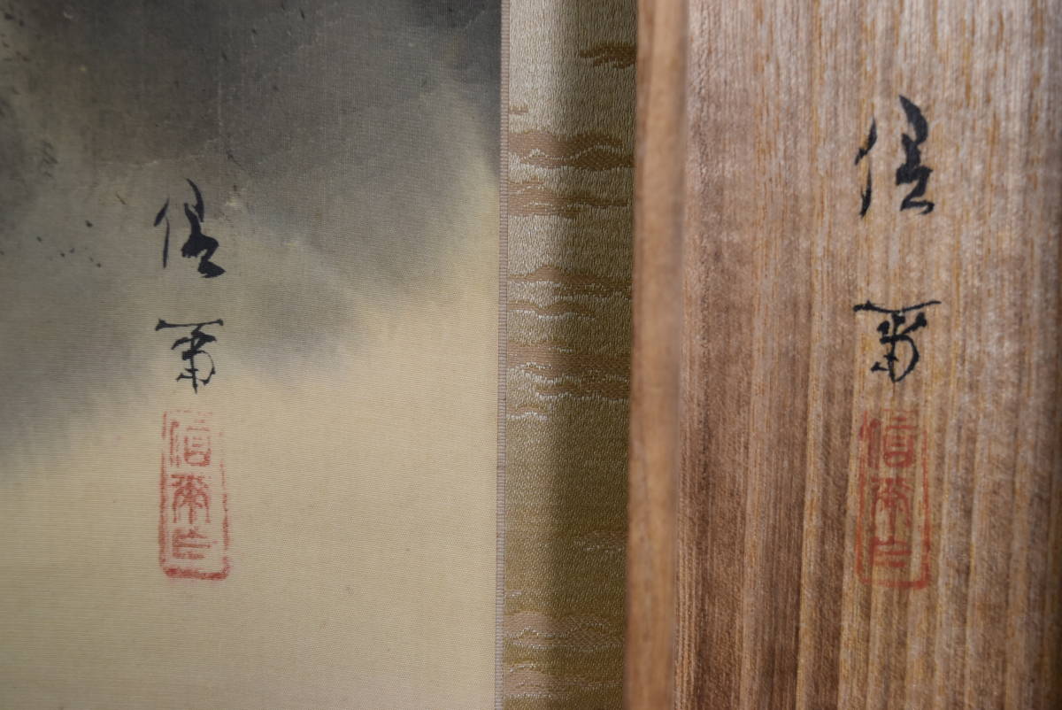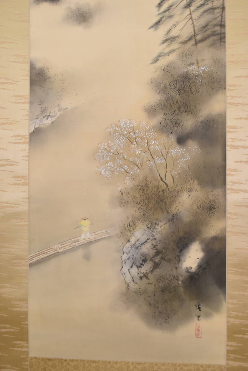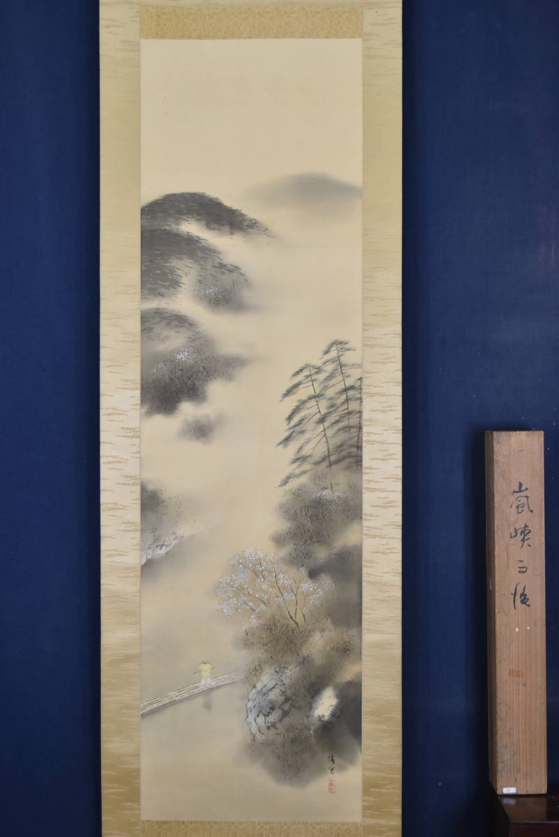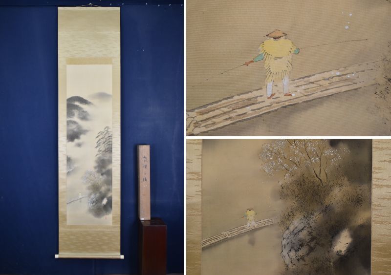 真作/信爾/嵐峡雨後図/筏下り図//掛軸☆宝船☆AA-935