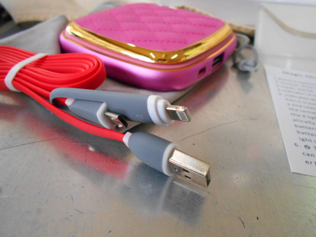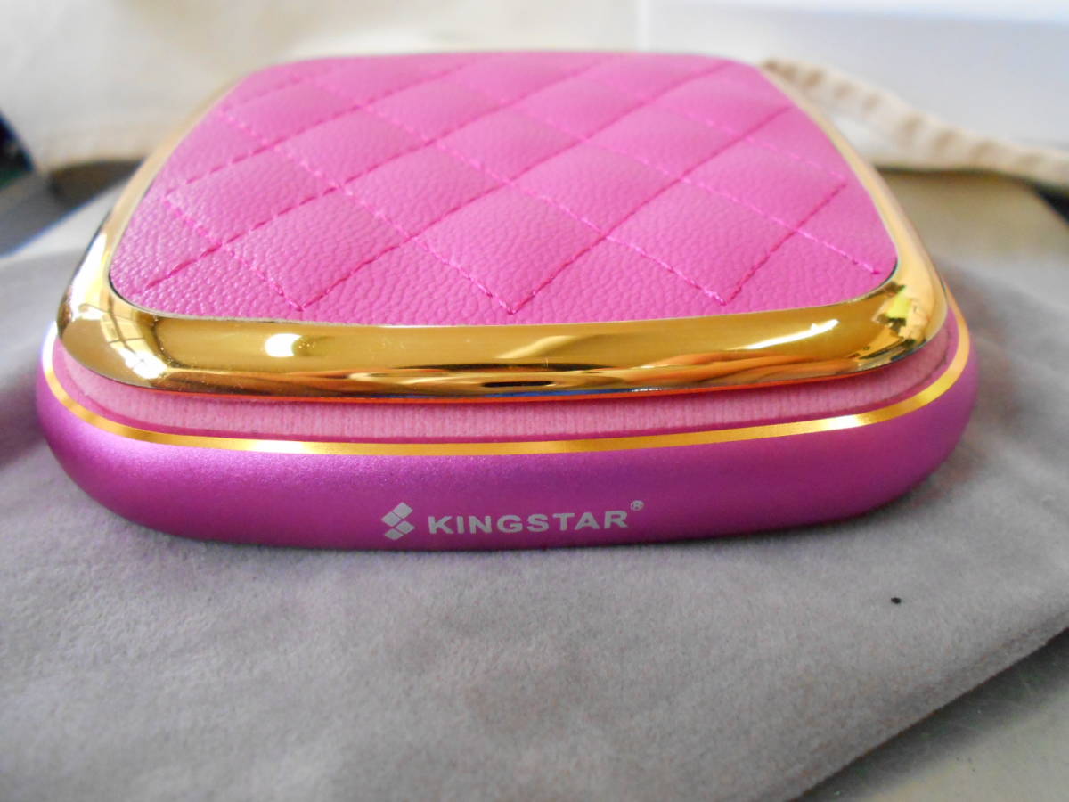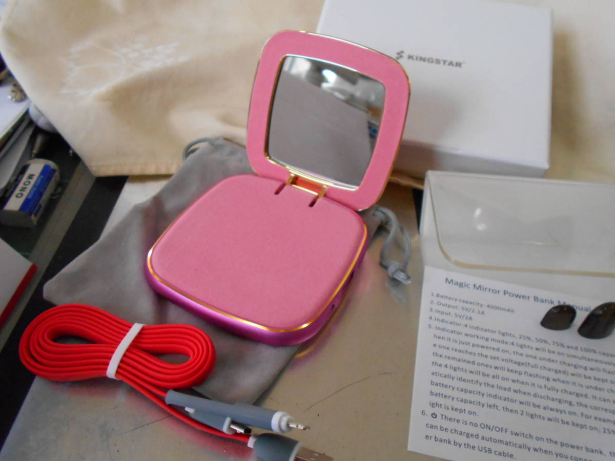 KINGSTAR 4000mah/5V/2.1A 化粧コンパクトミラー型 モバイルバッテリー ライトニング/マイクロ兼用USBケーブル付き