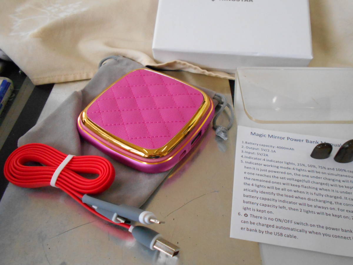 コンパクトミラー型で可愛いモバイルバッテリーとなります。