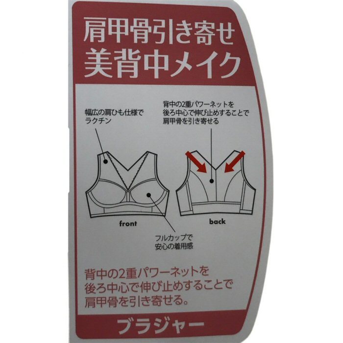 着けるだけで美しい姿勢をメイク。!! ノンワイヤーでつけ心地が楽なのに、背筋を伸ばして美ラインが完成。 背中の2重パワーネットで、肩甲骨を後ろ中心に引き寄せ、 美しい姿勢を作り出します。 フルカップで安心の着用感が得られます。 脇高タイプだから、脇や背中のハミ肉もすっきり。 幅広の肩ひも仕様で、肩への負担を軽減します。 トレンドのくすみカラーとリッチな花柄レースが可愛いデザイン。 ■サイズ■ Mサイズ バスト 79〜87cm Lサイズ バスト 86〜94cm LLサイズ バスト 93〜101cm ■カラー■ グレージュピンク ブルー ■素材■ ナイロン・ポリウレタン・その他 中国製 |