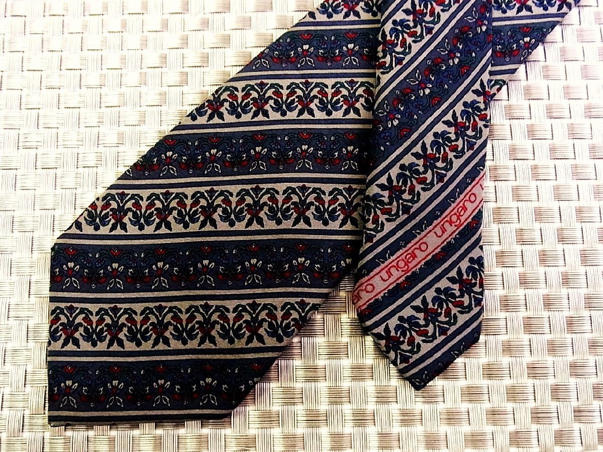 【在庫処分セール】●特売●FK2304●ウンガロ【花 植物 ストライプ 柄】ネクタイ●