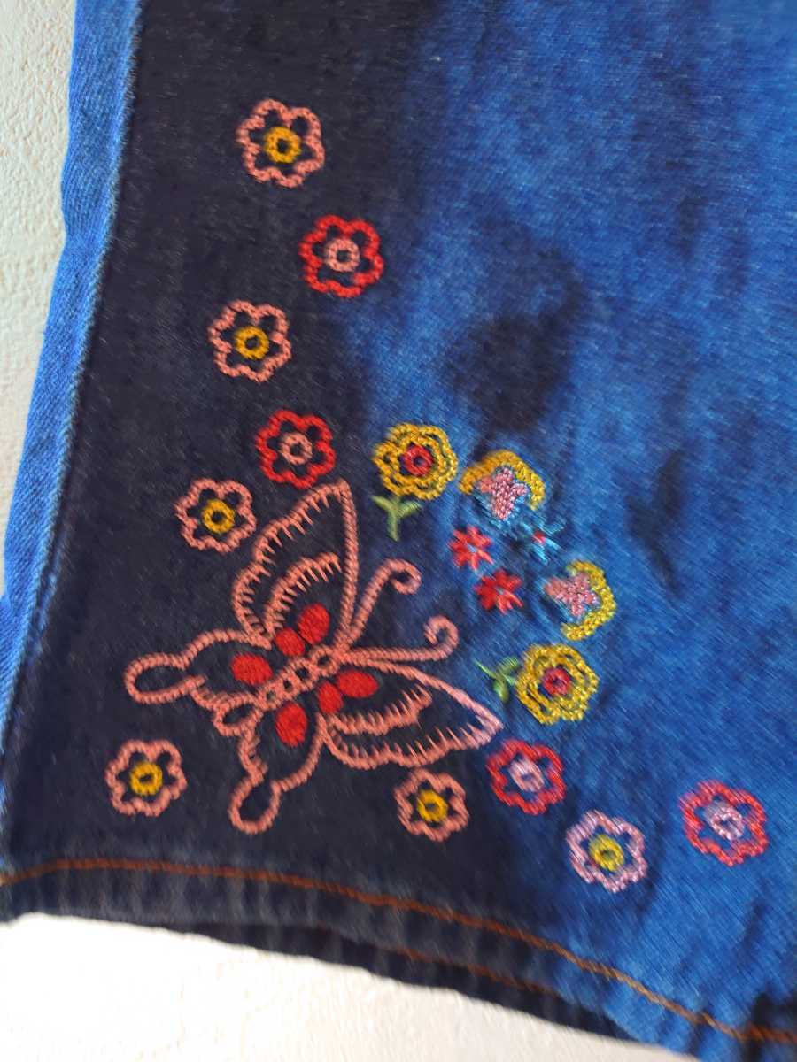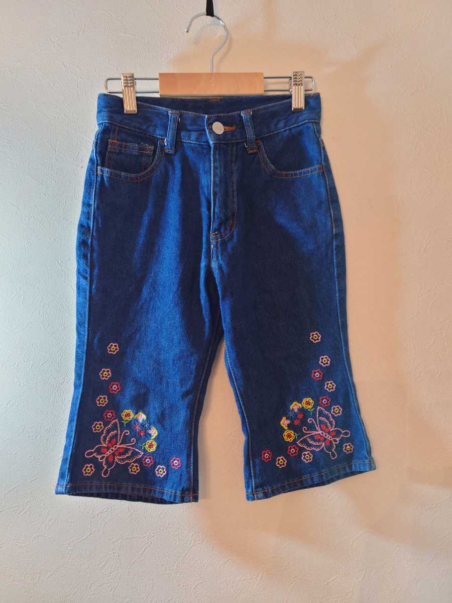 Wranglerのキッズ用デニムパンツになります。フォークロア調の刺繍がかわいいデニムになります。ブーツカットです。