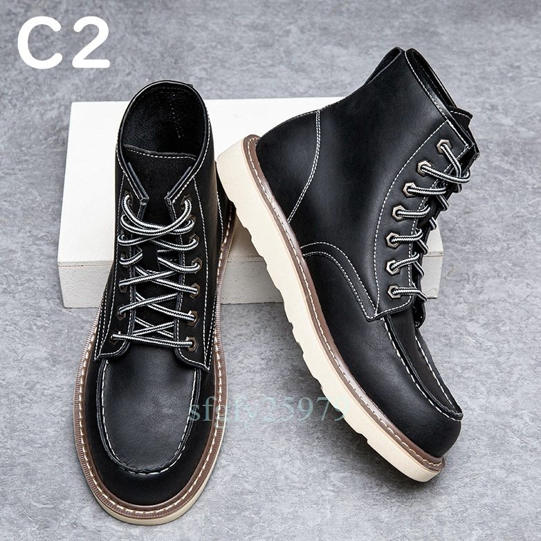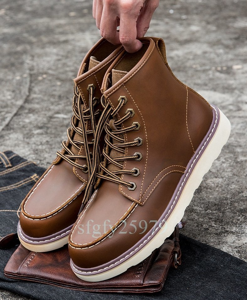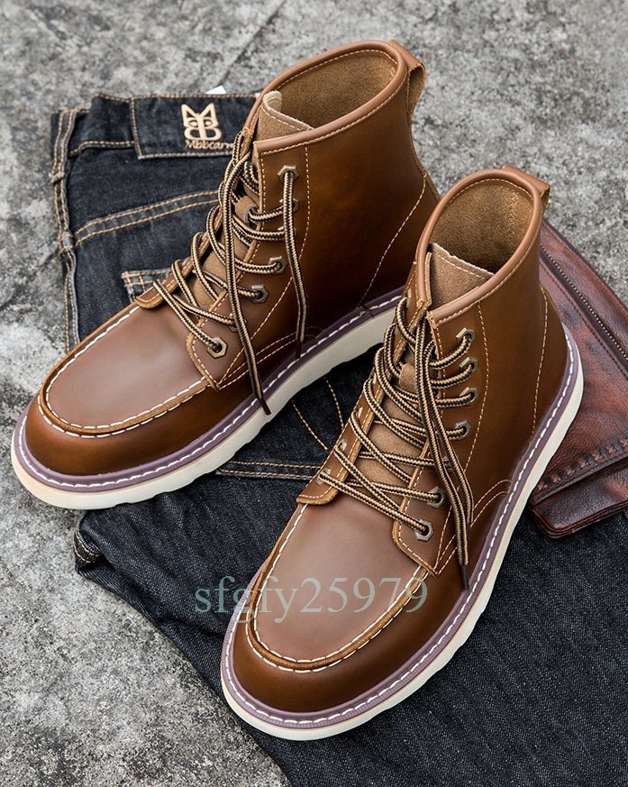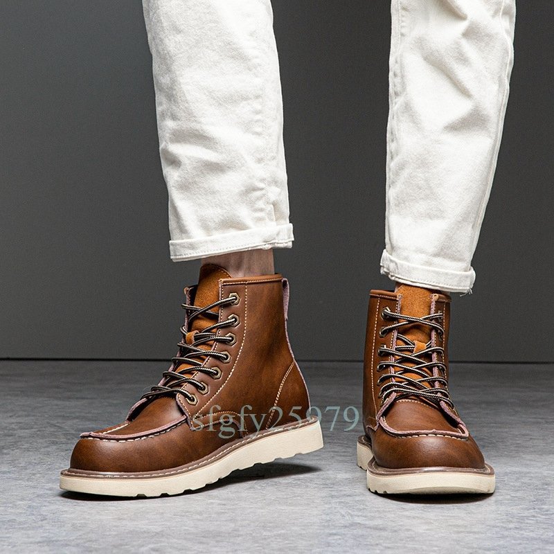 B21☆新品本革 ブーツ シューズ ウォーキングシューズ ショートブーツ メンズ バイク靴 大きいサイズあり24.5~29cm