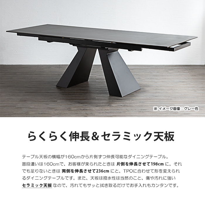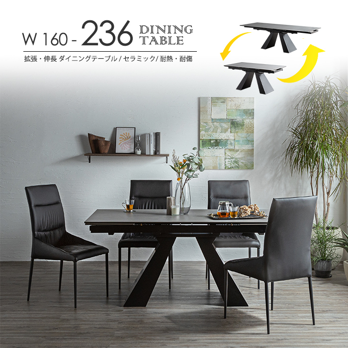 幅160cm 幅236cm セラミック天板 伸長ダイニングテーブル 伸長式 伸張式 拡張式 エクステンション テーブル ブラック