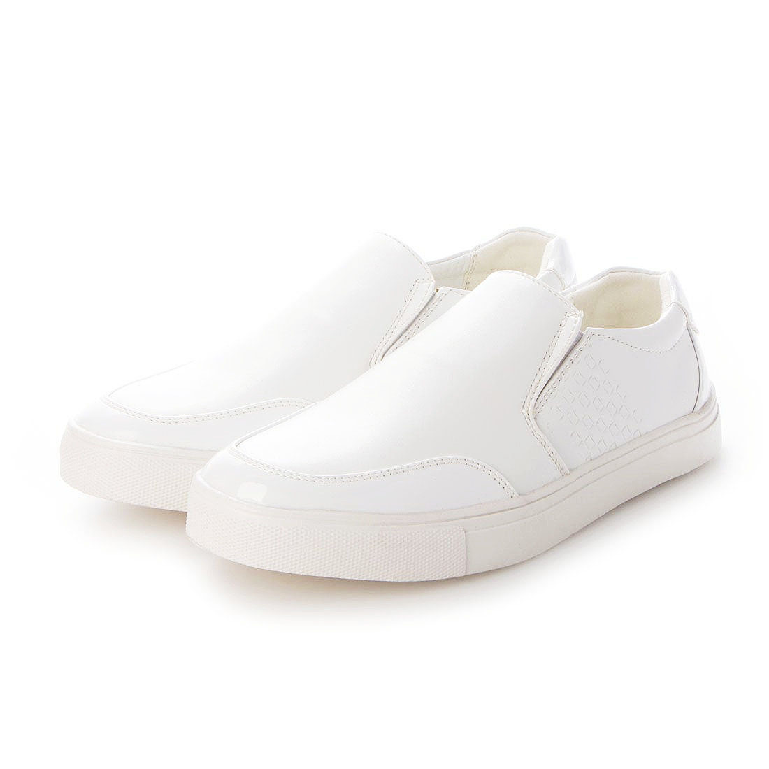 新品、訳あり商品、送料無料!『21109-WHT-280』 男女兼用・スムース&エナメル2トーンデッキシューズ・スニーカー |