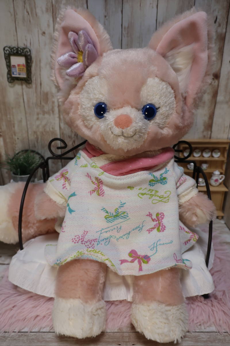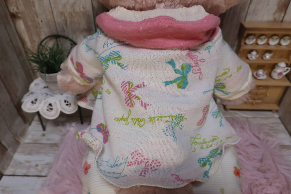 ピンク色襟 りぼんパステル リーナベルSサイズコスチューム 縫いぐるみのお洋服 ハンドメイド パーカー風ワンピース