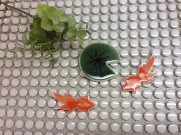 | 商品説明 | 当方オリジナル、金魚タイルです。 風流ですよ~ タイルクラフトのポイントやお部屋の装飾などにいかがでしょう! 蓮の葉タイルとご一緒に購入いただけたらと思います。 当方はこのタイルを使って、タイルシンクの底の部分に使ってます。 材質 磁器質 施釉 サイズ 約60mm×25mm×5mm ★落札価格は、金魚タイル1枚の価格になります。 また、アンティークタイルやレアなタイル、風流な蓮の葉タイル、モザイクタイル製品も数多く出品しておりますので 出品者その他のオークションもご覧いただけたらと思います。 |