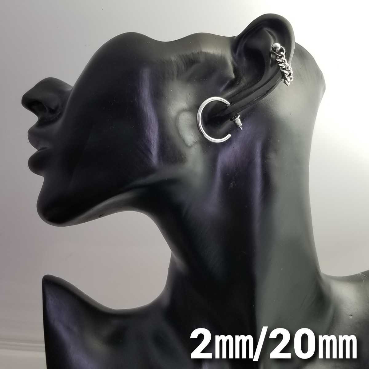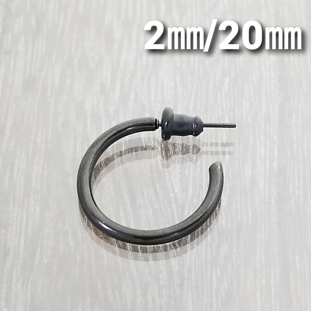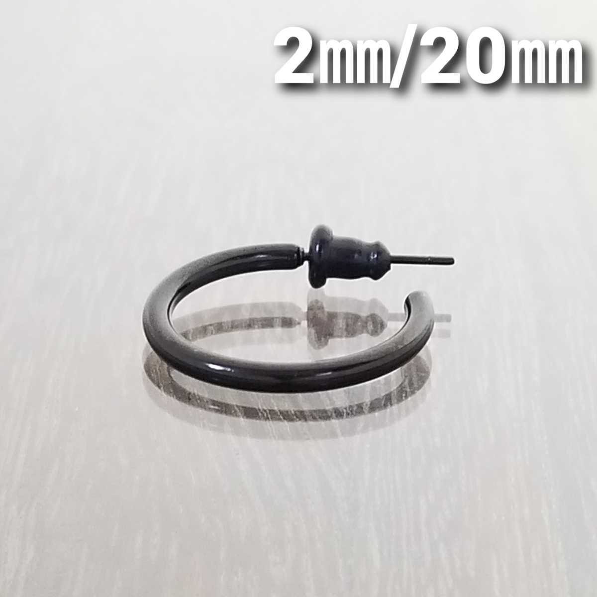 2㎜フープスタッドピアス☆ブラック【外径20㎜/1個】ステンレスピアス