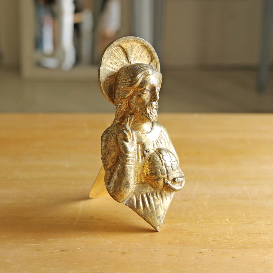 手のひらサイズのキリストは、真鍮製のずしりと重みを感じるお品です。