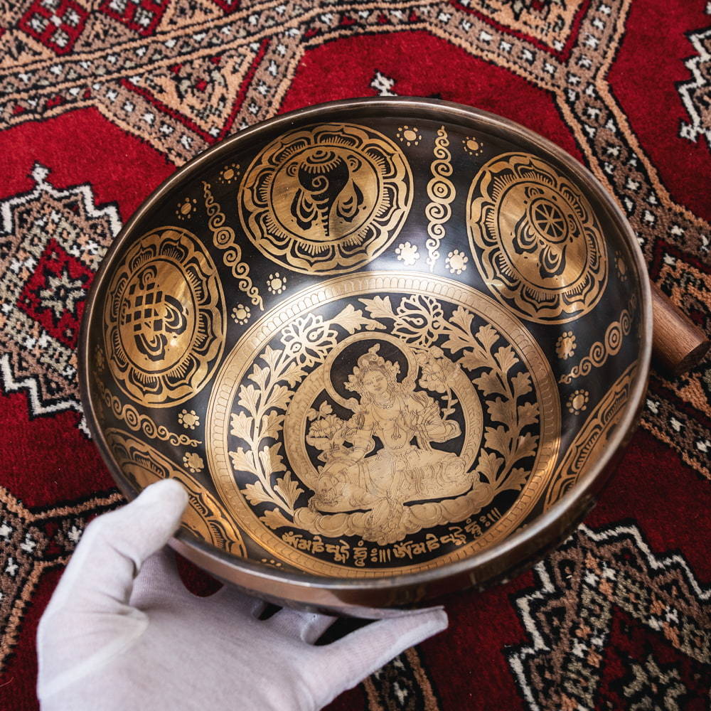 | キーについて | 倍音を出やすくするために数種類の金属を配合してできたものですので、シンギングボールの持ち方や叩き方、叩く位置などでもピッチが変わってきます。また、倍音の特性としまして擦ってでた倍音はこちらのピッチとは限りません。こちらで測ったキーは、一つの目安としてお考え頂ければと思います。記載されている音程以外が鳴りやすい場合もございますので、音程が気になる場合は、試奏の録音からご判断ください。音程が異なる場合の返品交換は承ることができかねます。 |