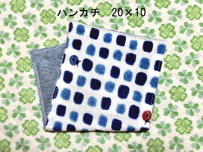 ポケットに収まりやすい、ハンドメイド・長方形20×10センチのダブルガーゼ&タオルのハンカチです。