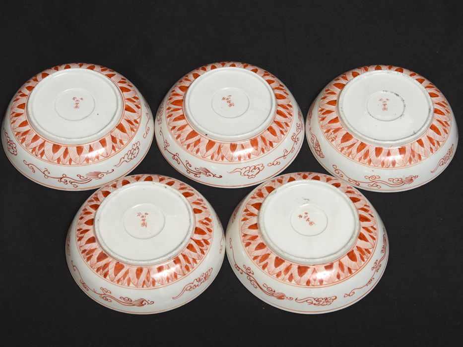 時代 九谷焼 九谷 西埜画 七福神に鶴松図 金彩赤絵 向付5客 花鳥図 山水図 明治期 皿 小鉢 陶磁器 |