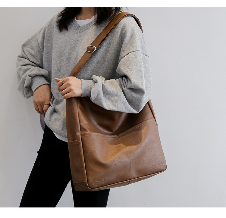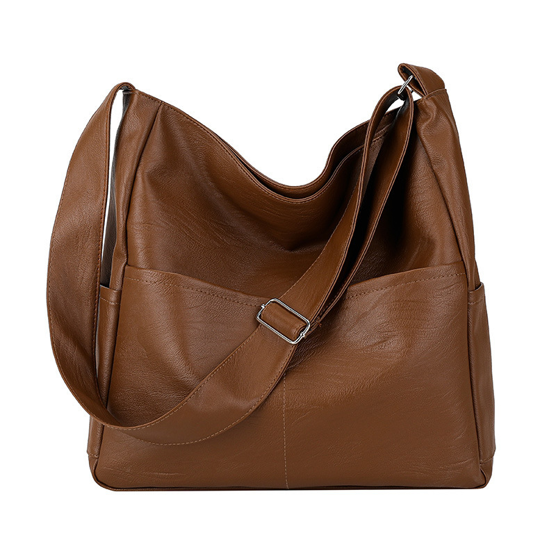 斜め掛けバッグ ボディバッグ ショルダーバッグ PUレザー 大きめ レディース ブラウン【372】