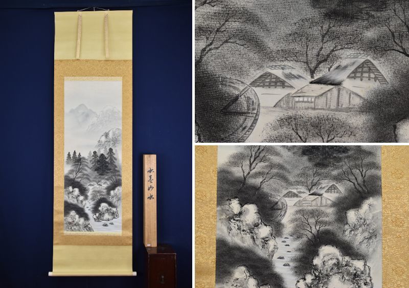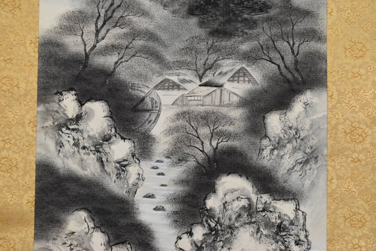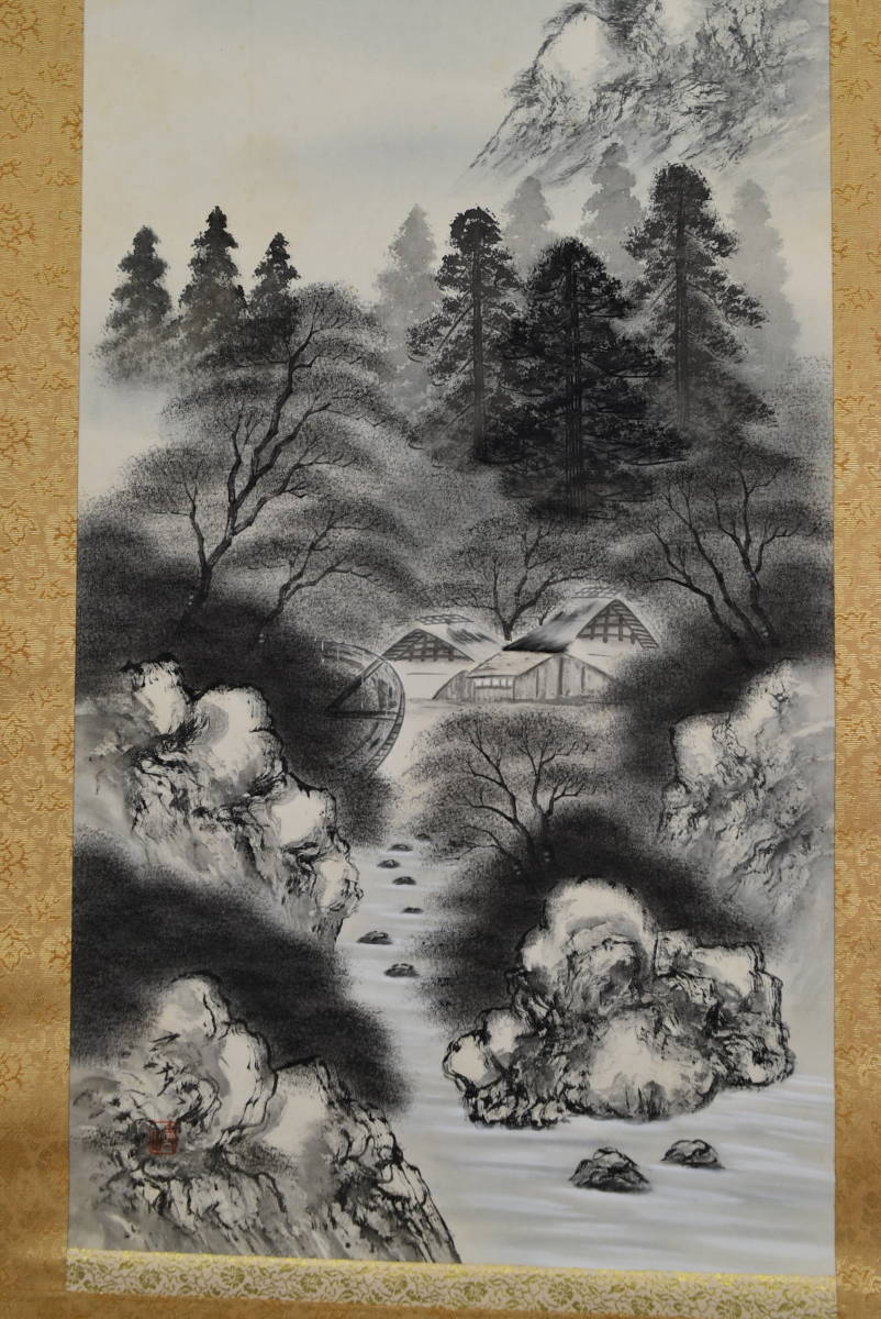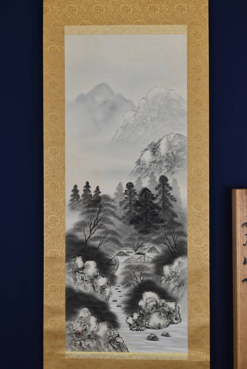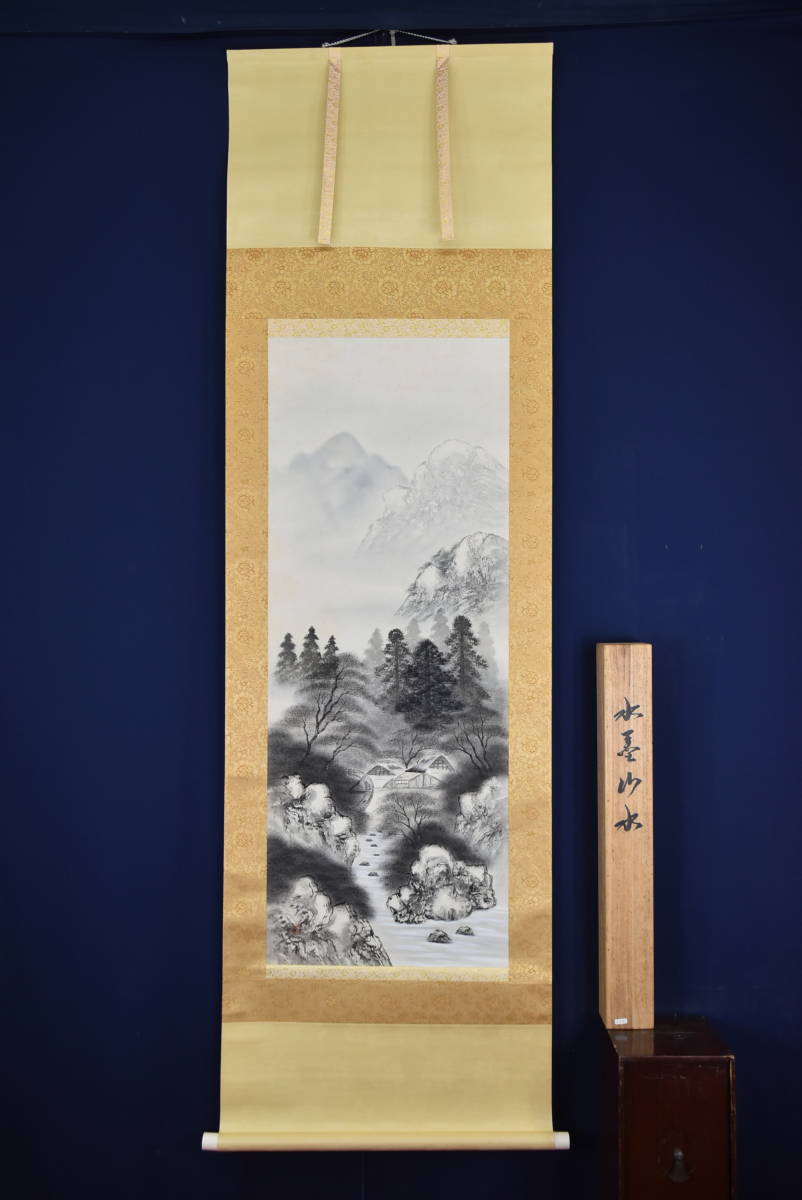 真作/寺田一夫/山水図//掛軸☆宝船☆AB-326