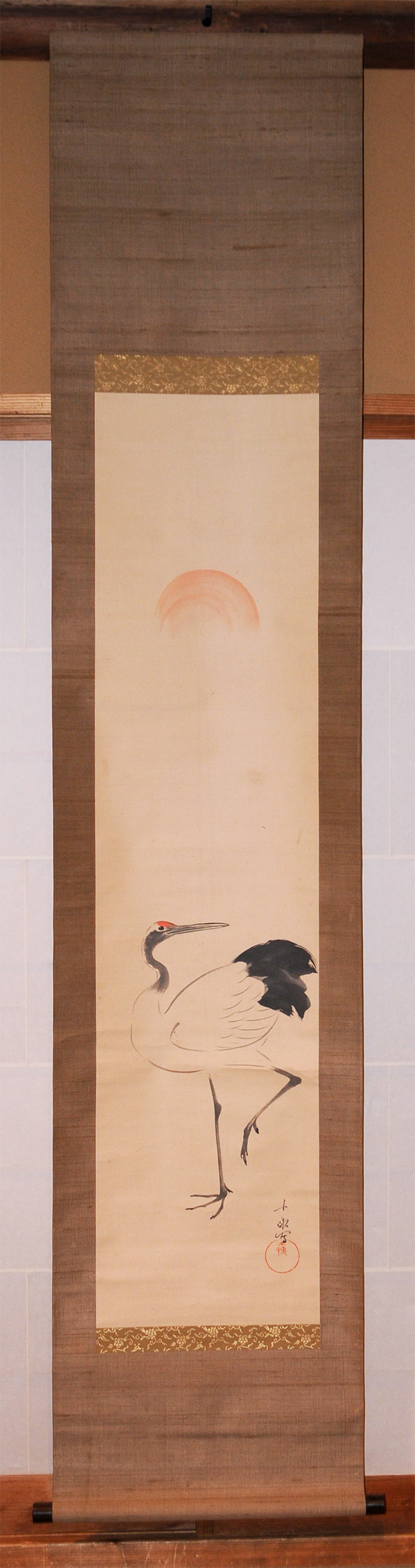 【真作】荒木十甫画「旭日丹頂鶴」掛軸です。 表具は一文字、金襴 中回し、しけで上品な軸装となっております。 概ね良い状態です。 ※撮影の際に生じた写り込みなどがございます。 ご理解の程よろしくお願い致します。 |
