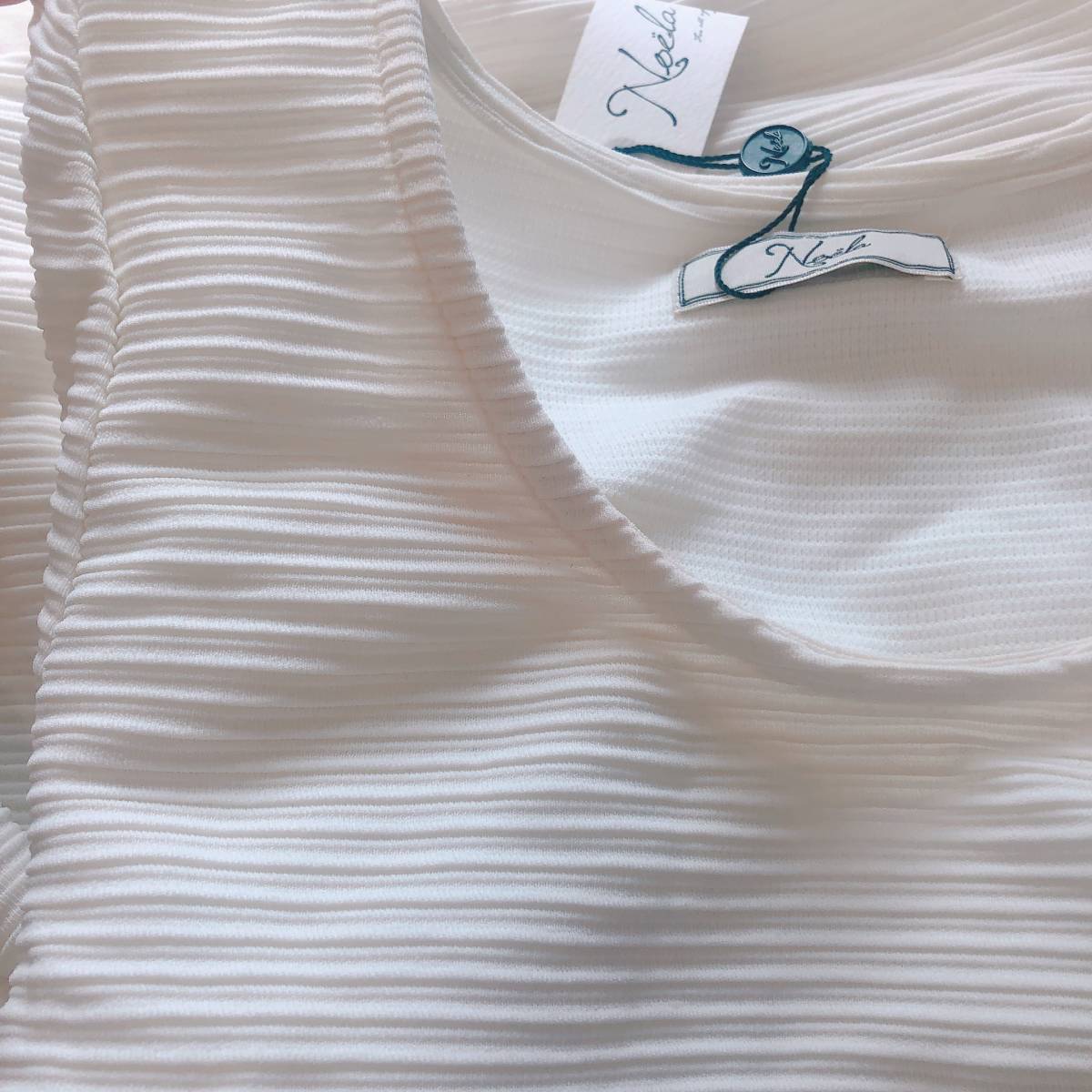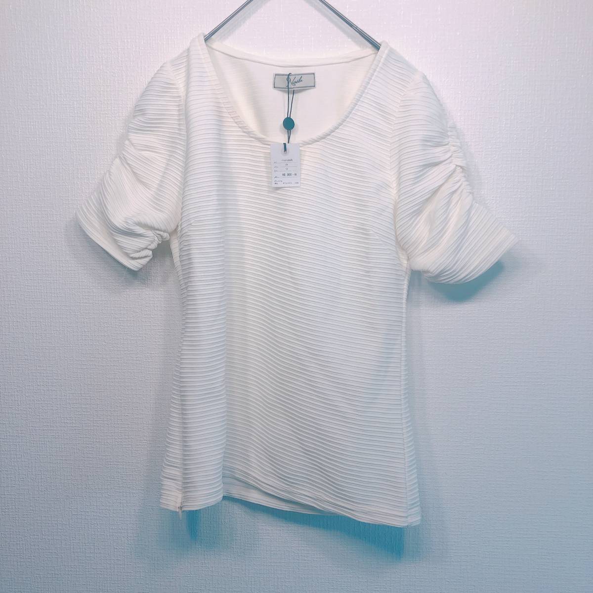 Noeraの半袖カットソーです。 デコルテが少し広めのため、首が長く見えて小顔効果があります。 パワーショルダーのギャザーがフェミニンな印象に仕上げてくれます。 |