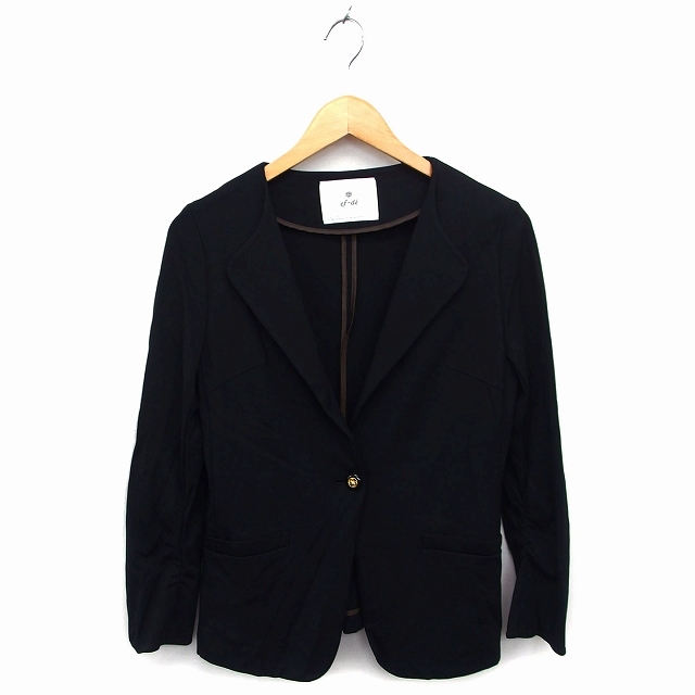 エフデ ef-de ジャケット アウター トライアングルカラー 背抜き 無地 9 黒 ブラック /NT17 レディース