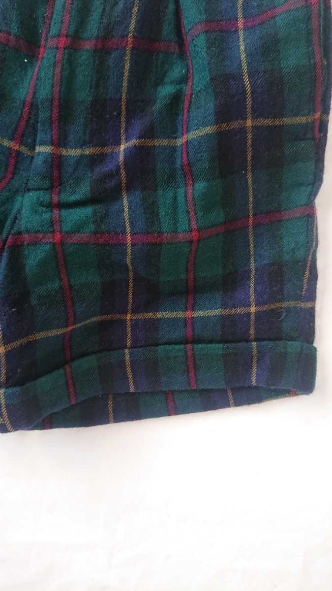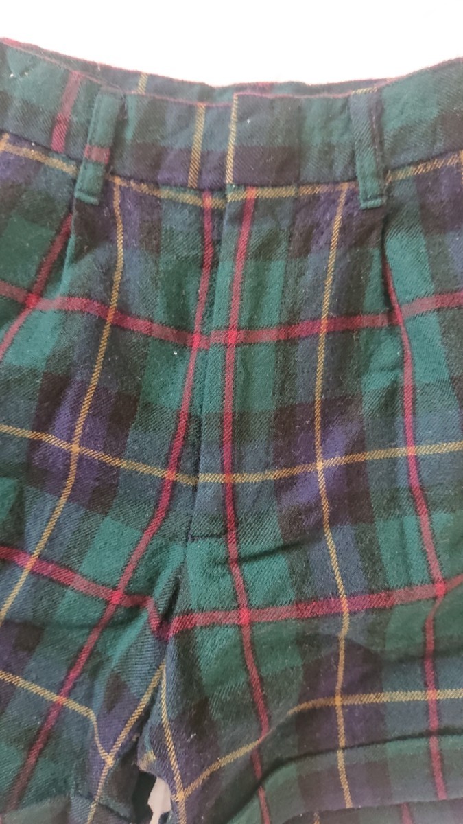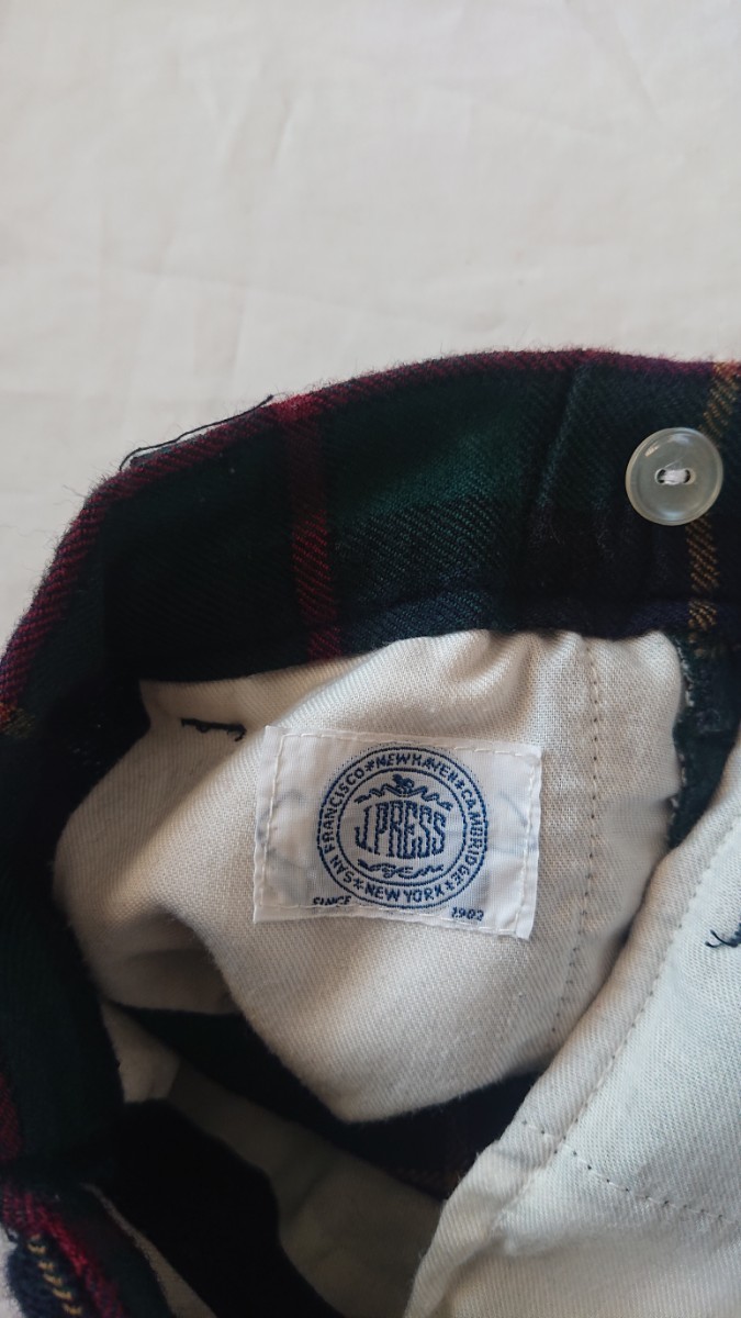 J.プレスの子供用のウール半ズボンです。サイズは120A表記でウエストは53~59cmと表示されています。高級感のあるウール素材でチェックの色もとても美しくフォーマルな場でもきまるオシャレな逸品です。2,3度着用の美品になります。