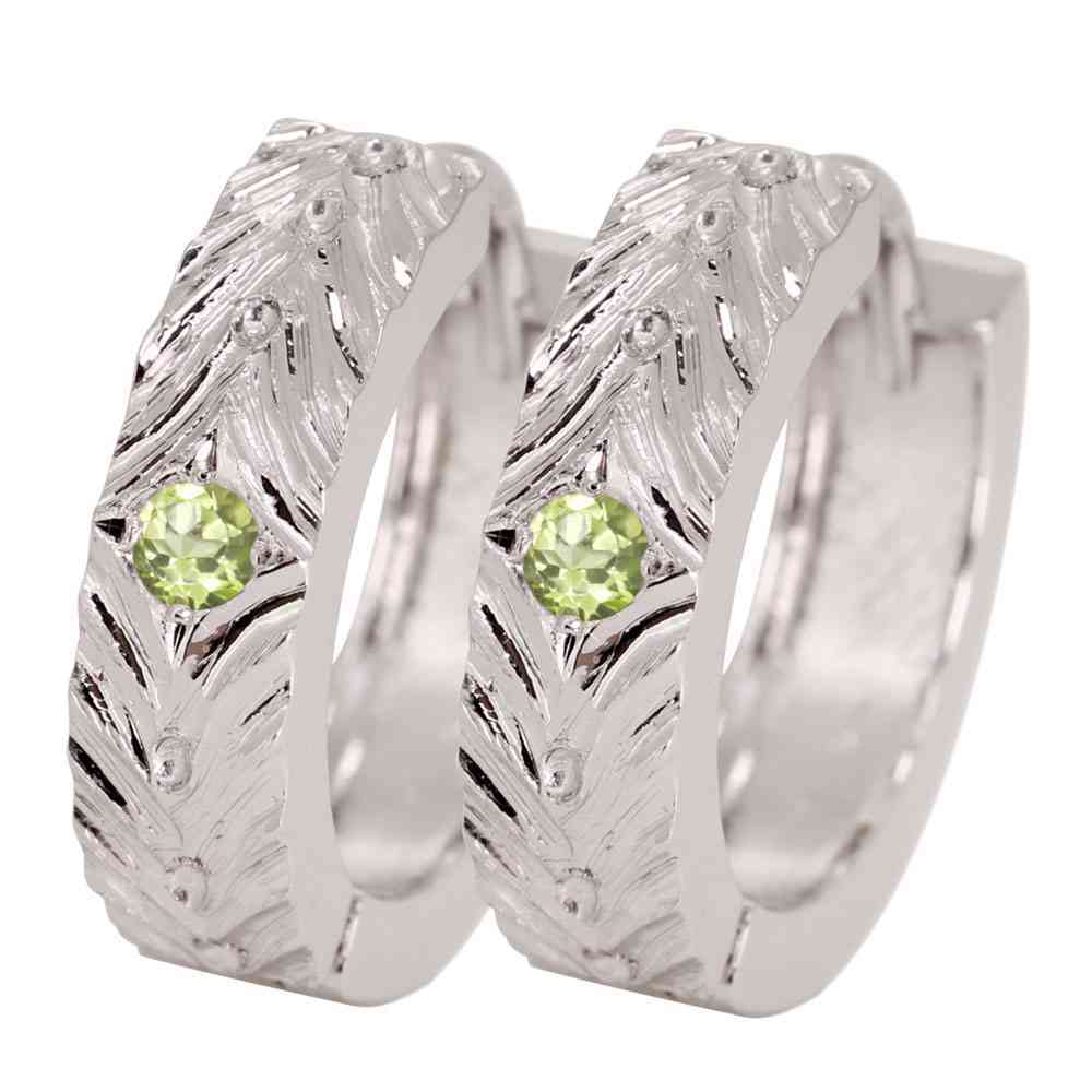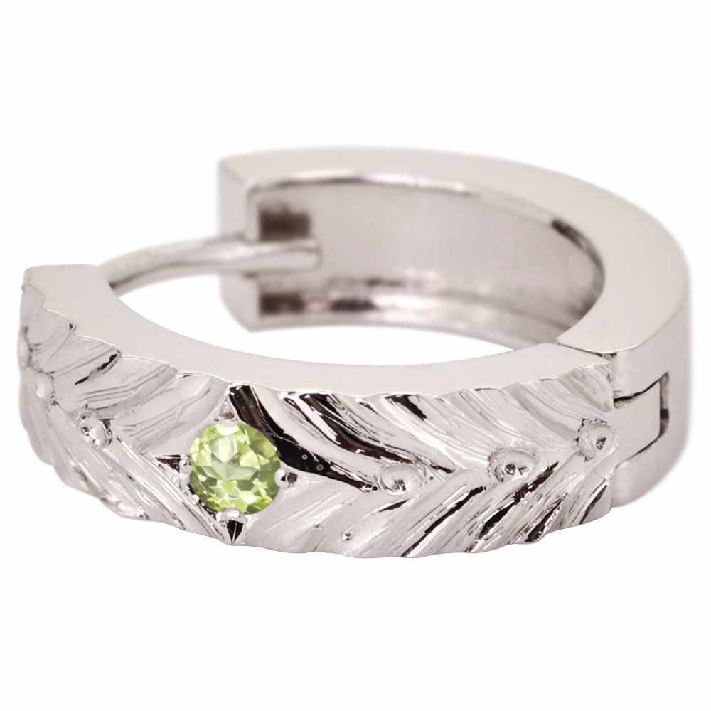 8月誕生石ペリドットを使用したシルバー製の、レディースフープピアスです。