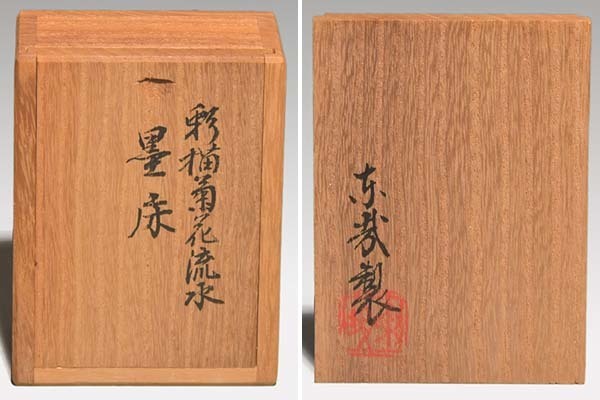 山田東哉(造)彩描菊花流水墨床 色絵金彩 蓋置にも 共箱 文房具 書道具 茶道具 現代工芸 美品 |