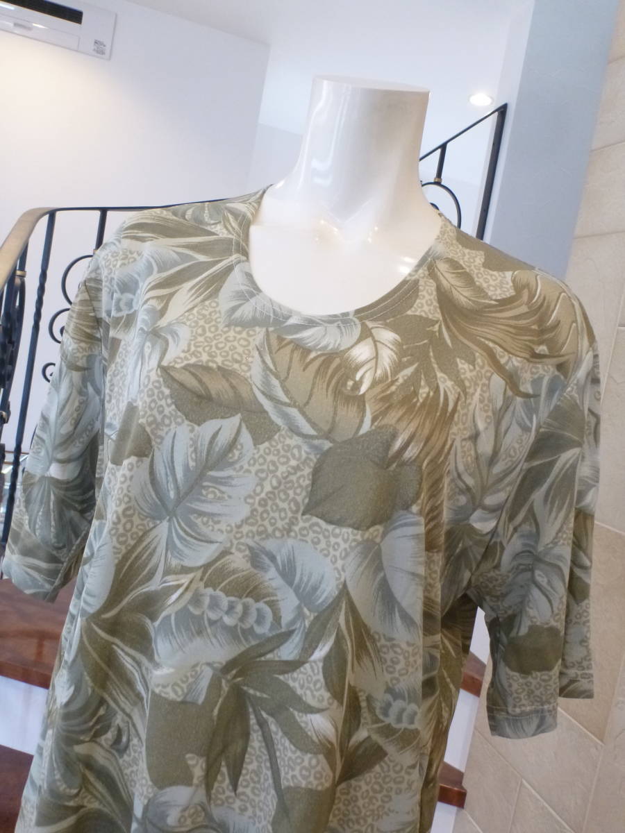 美品 donna MALISA ★イタリア製 グリーン系 サラッと生地 チュニックトップス 44 XL相当