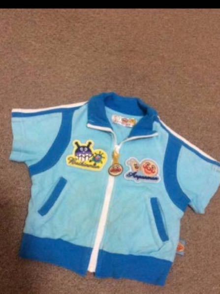 107男の子95程アンパンマンの水色の半袖ジップアップ