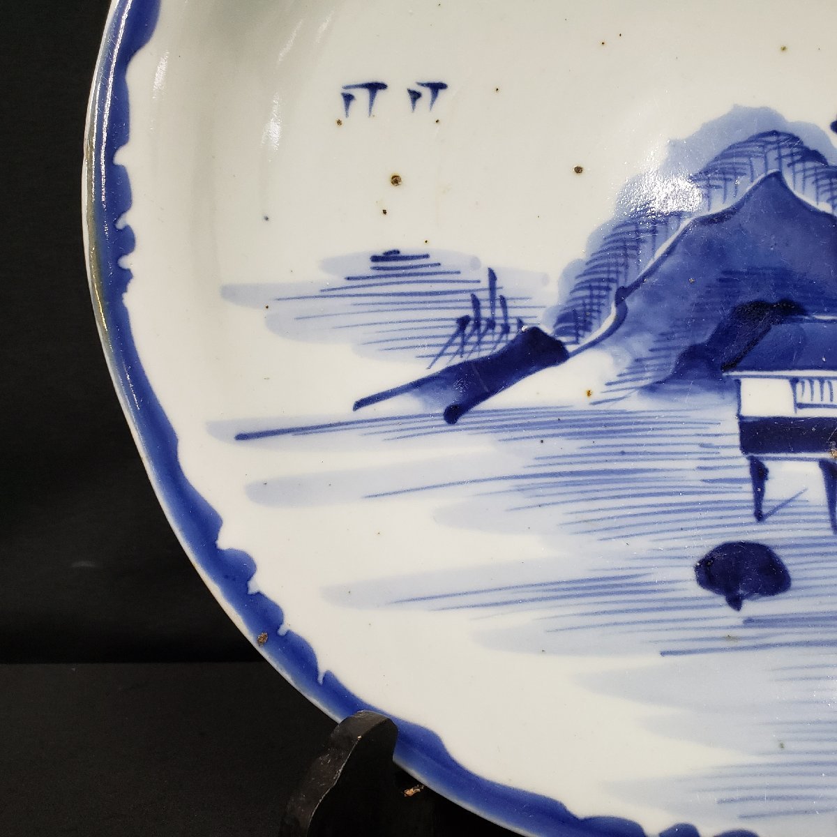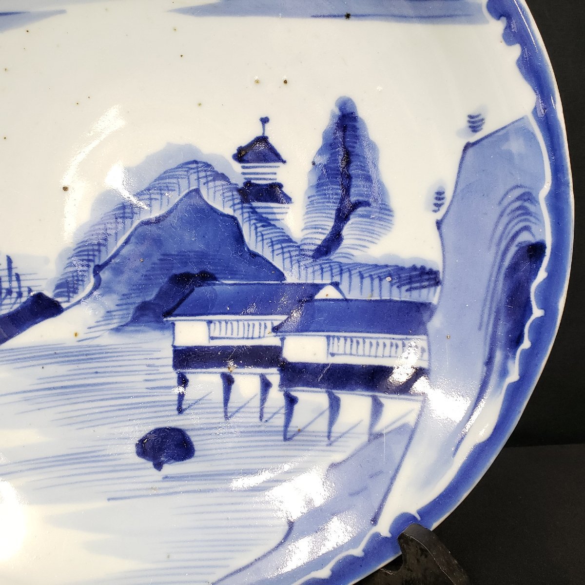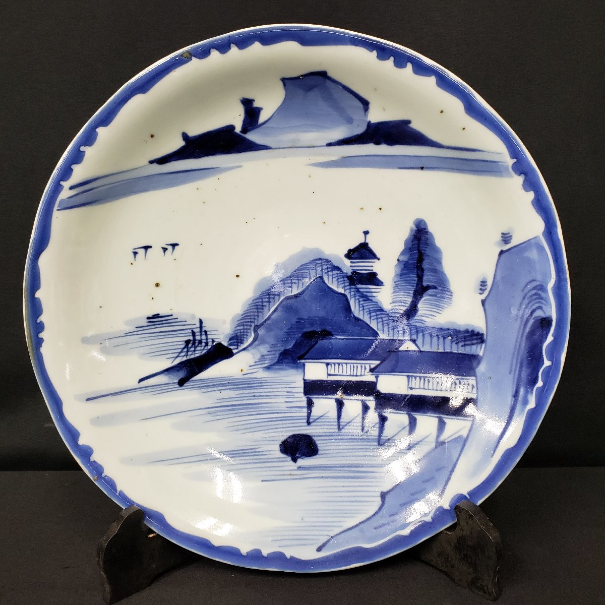 | 径29.5cm 風景画 染付 大皿 陶磁器 古伊万里 九谷 盛付皿 おかず皿 和食器 飾り皿 古美術品 骨董 アンティーク | |