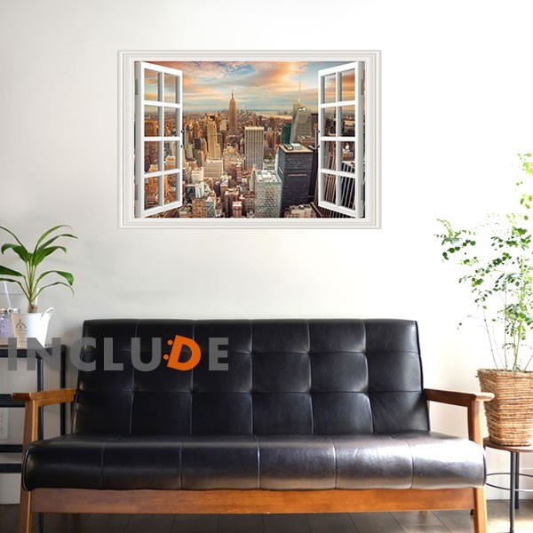 ウォールステッカー ウォールシール サンセット ダウンタウン 日没 夕焼け 窓 窓辺 休日 摩天楼 ニューヨーク マンハッタン