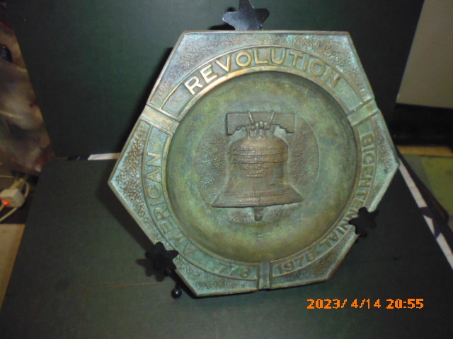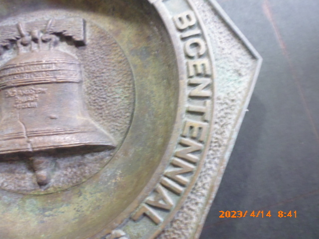 縦、横が 共に20cm程の真鍮製。 アメリカ合衆国(USA)が1976年に建国200年(177~6年に独立)を祝った時の 灰皿。