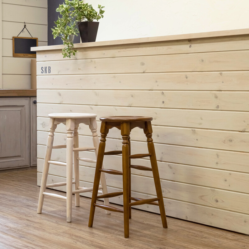 ・座面の高さは約63.5cmで、カウンターテーブルにもあう足掛け付きのハイタイプです。