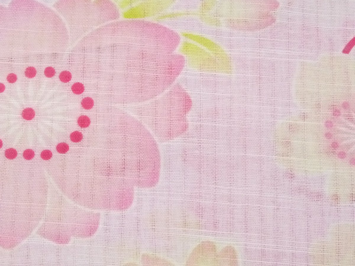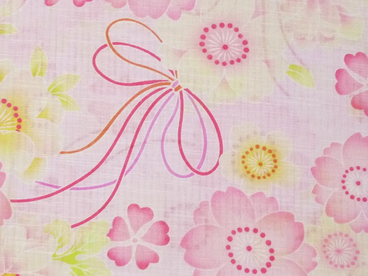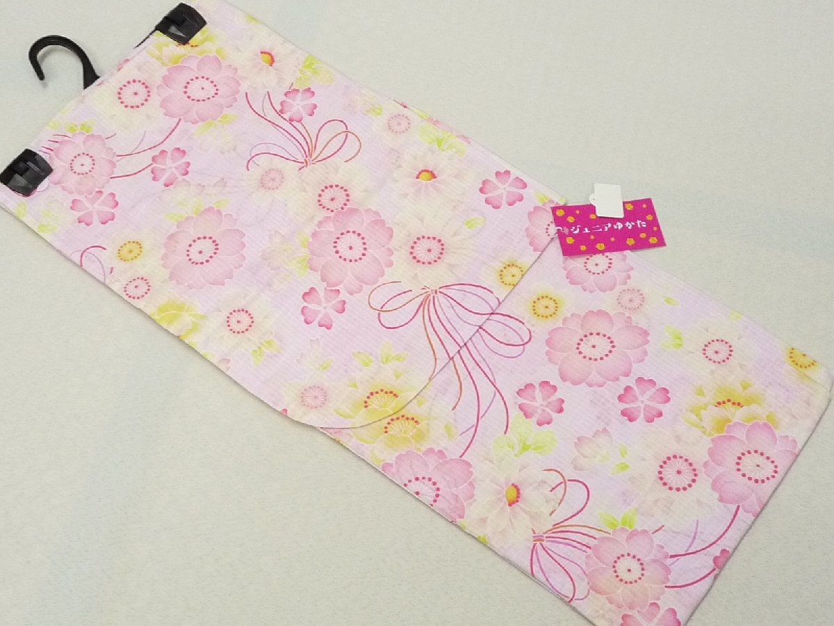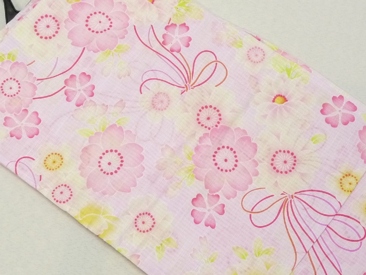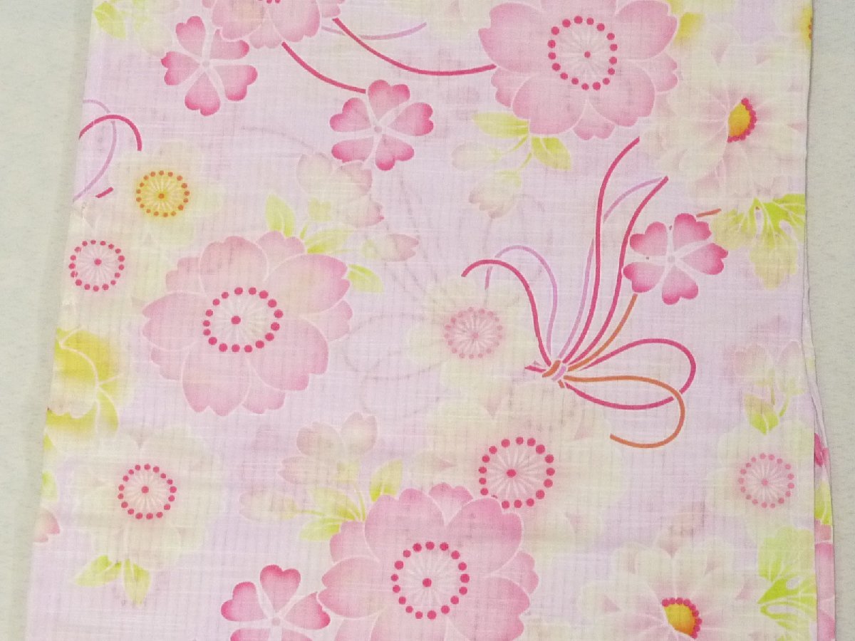 | 商品名 まゆの四季/新品/高級変わり織綿紅梅/13歳14歳/子ども用浴衣150-八重桜-ピンク系薄紫地 | ||