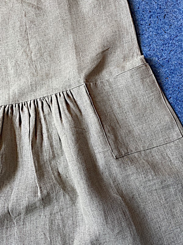 ウェスト部分は、ギャザー、ウエスト下に大きなポケット付きです。