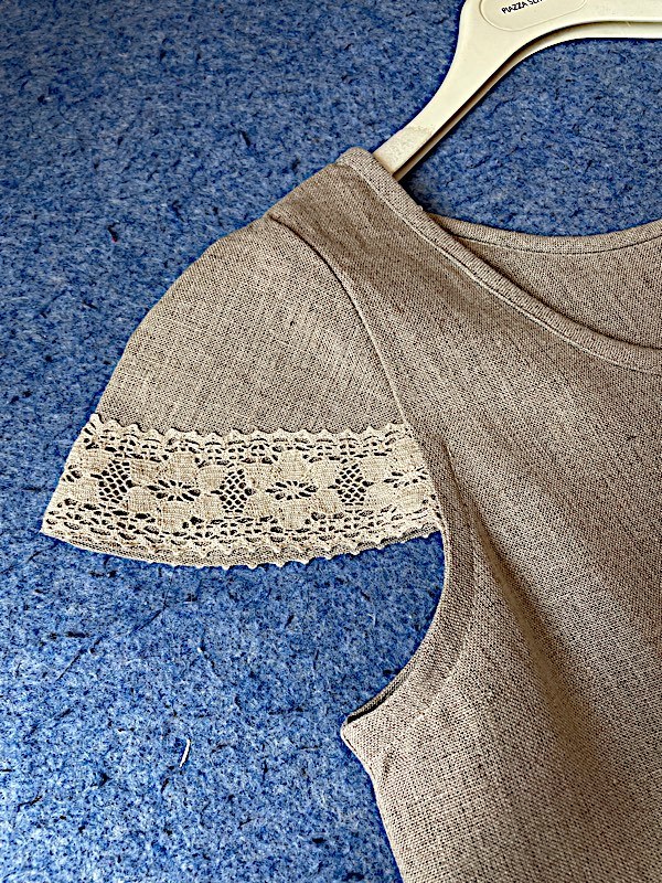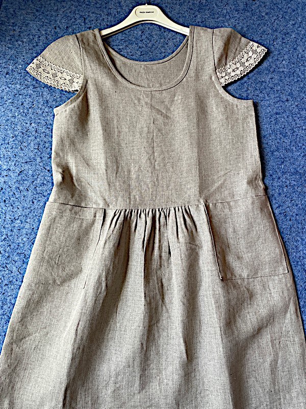 HMSS◆ハンドメイド◆キャップスリーブ ワンピース◆ベルギーリネン◆スカラップレース