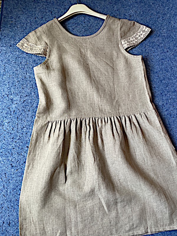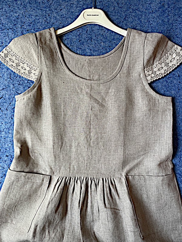 HMSS◆ハンドメイド◆キャップスリーブ ワンピース◆ベルギーリネン◆スカラップレース