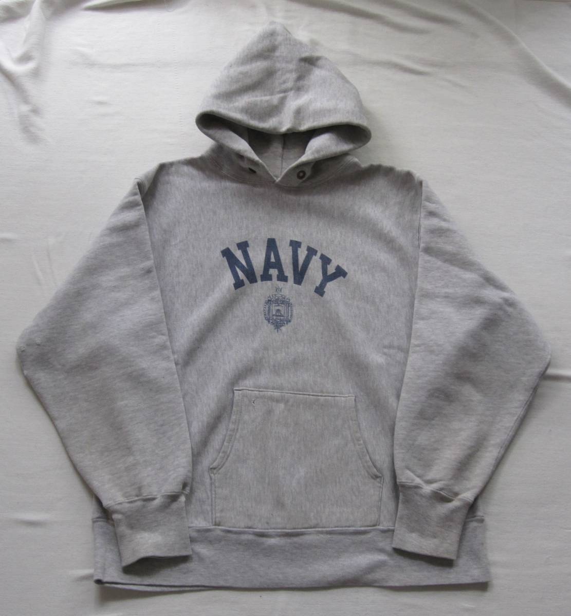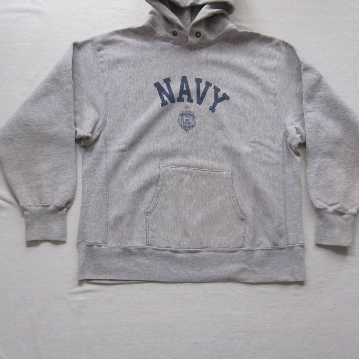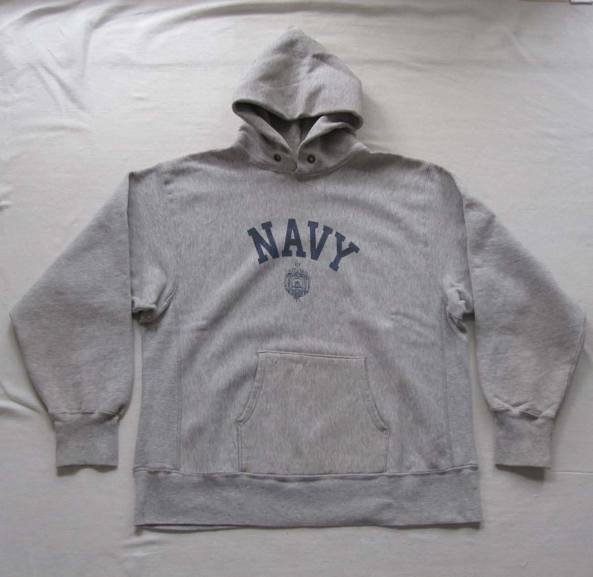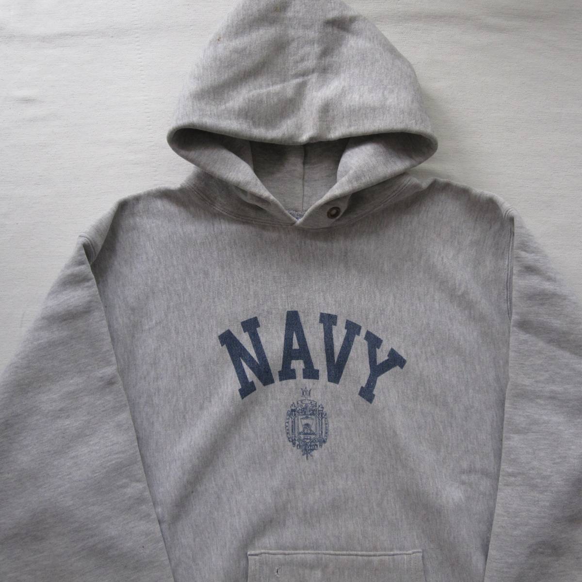 ☆ 80s トリコタグ チャンピオン USNAVY リバースウィーブ パーカー (XL) 染み込み ヴィンテージ/ 単色タグ タタキ 後付け navy usafa usma
