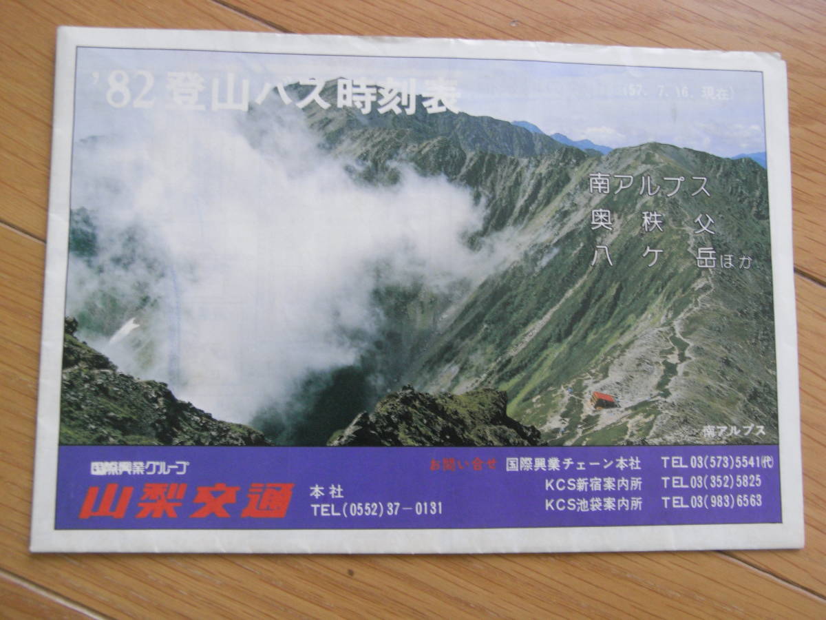 山梨交通 '82登山バス時刻表 昭和57年7月16日現在