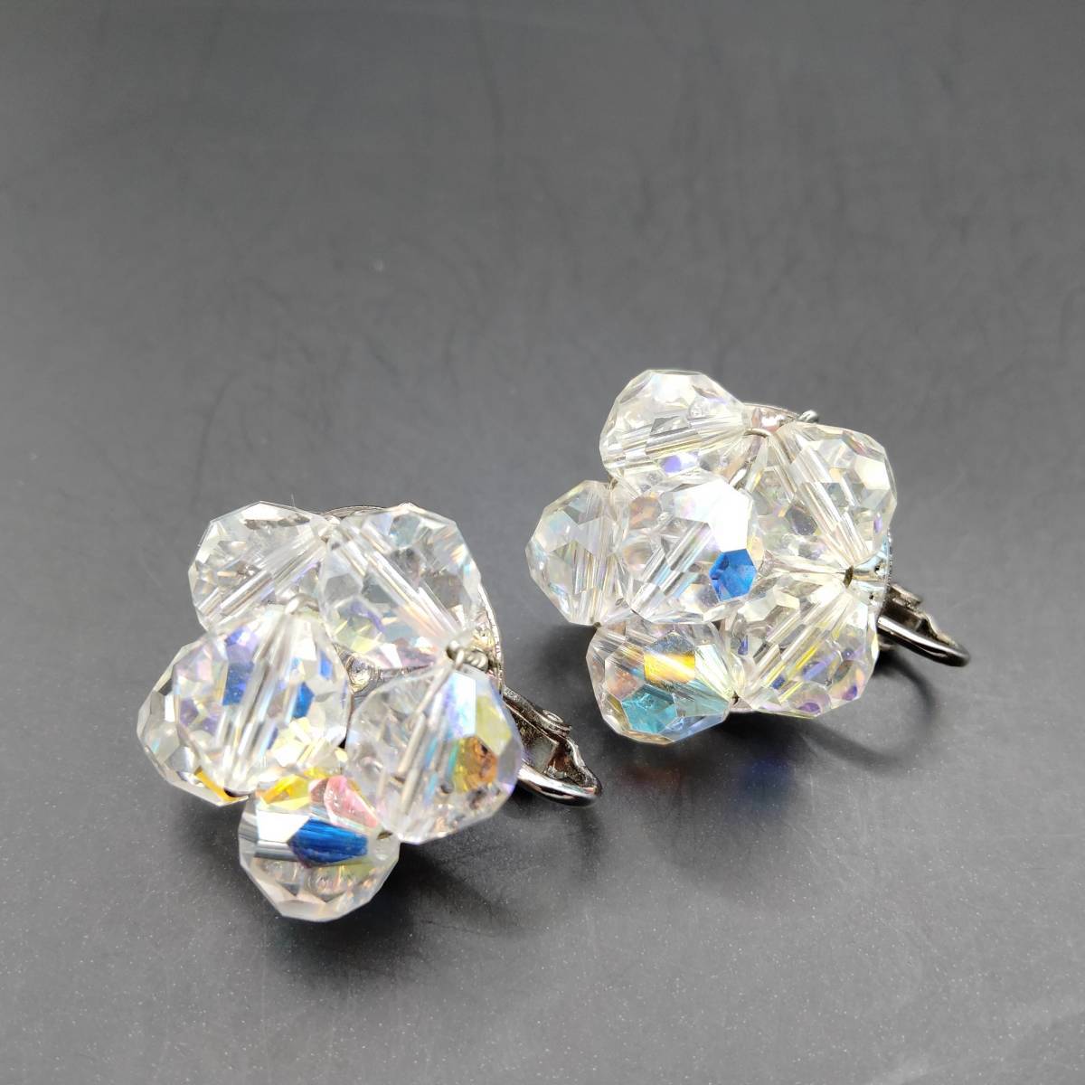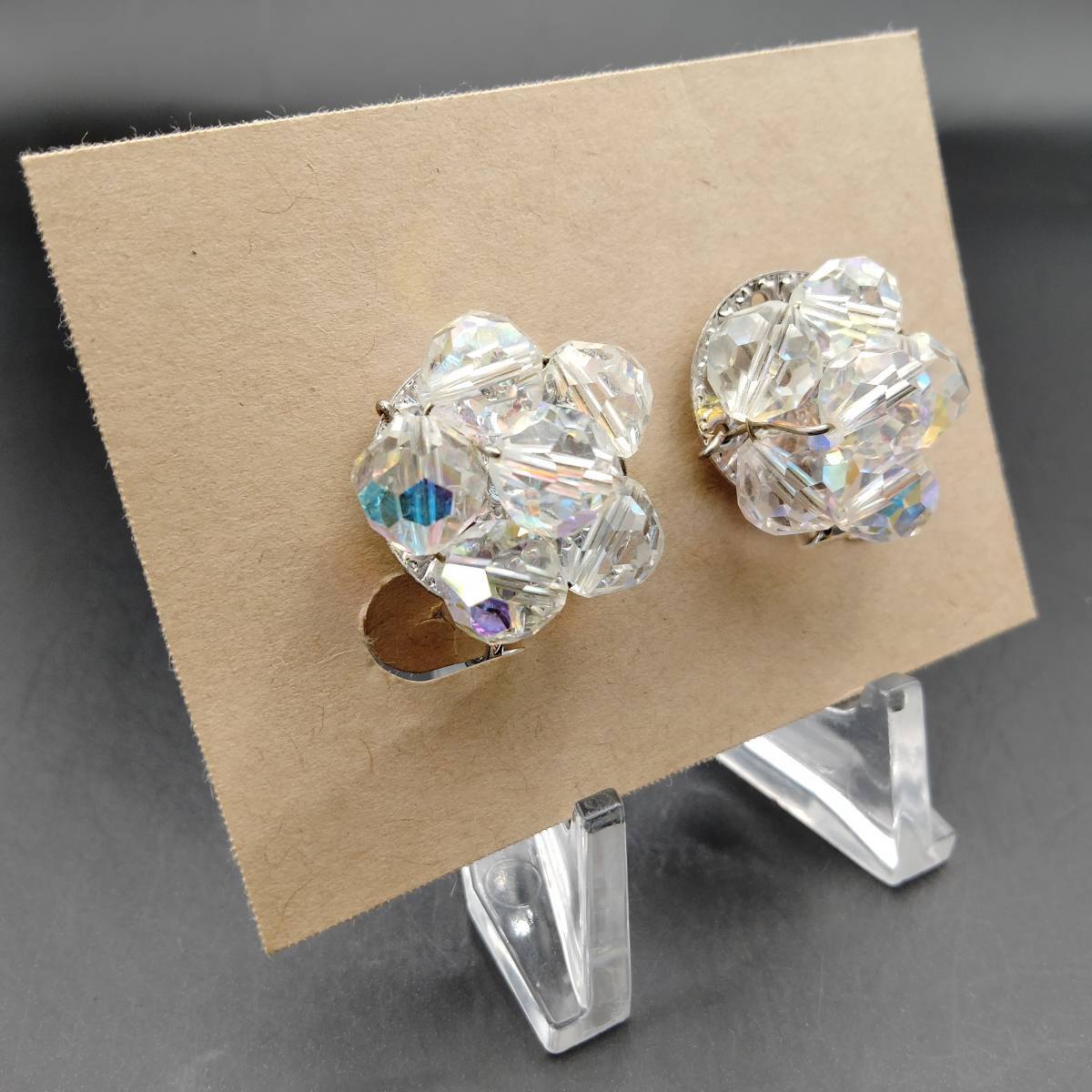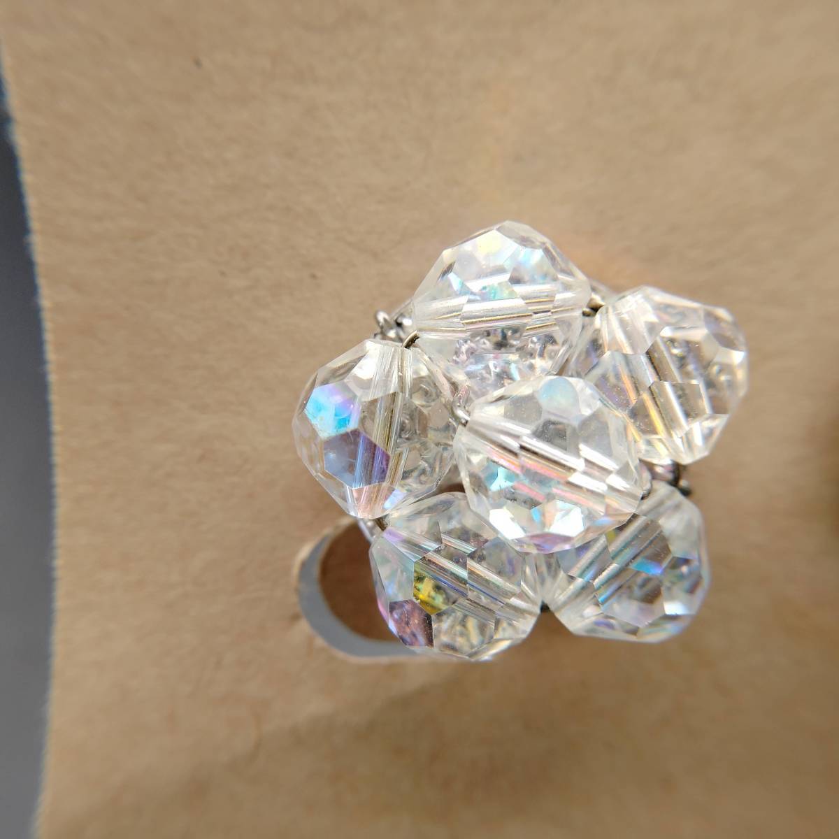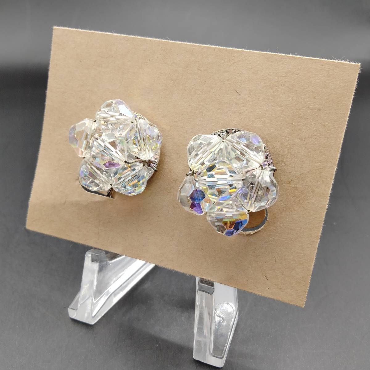 クリアボール ビーズ フラワー 花 シルバートーン ビンテージ クリップ イヤリング アールデコ 昭和レトロ コスチューム ジュエリー 輸入 YMW20