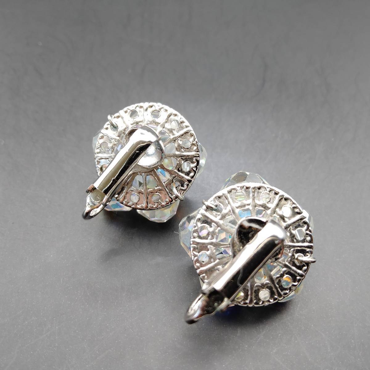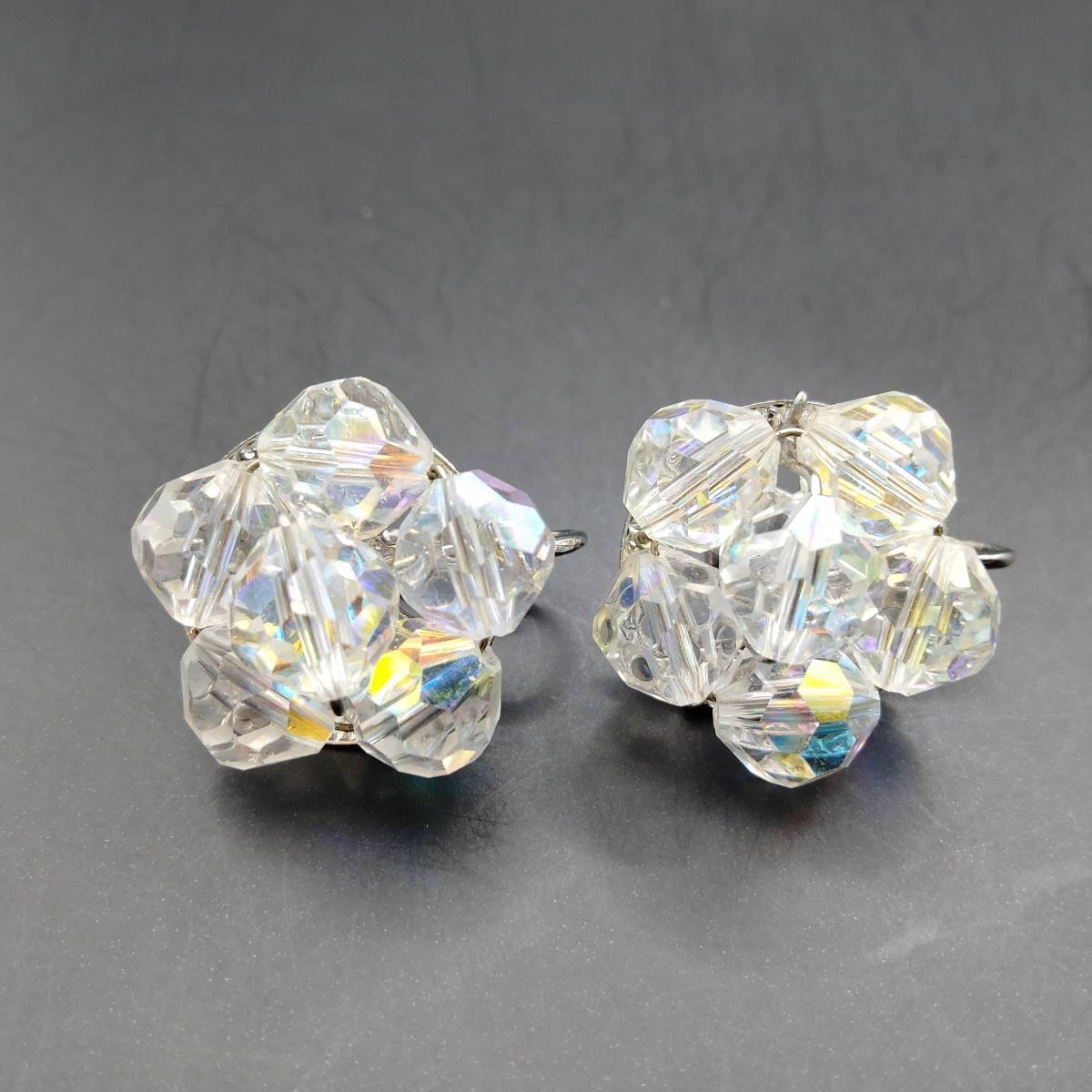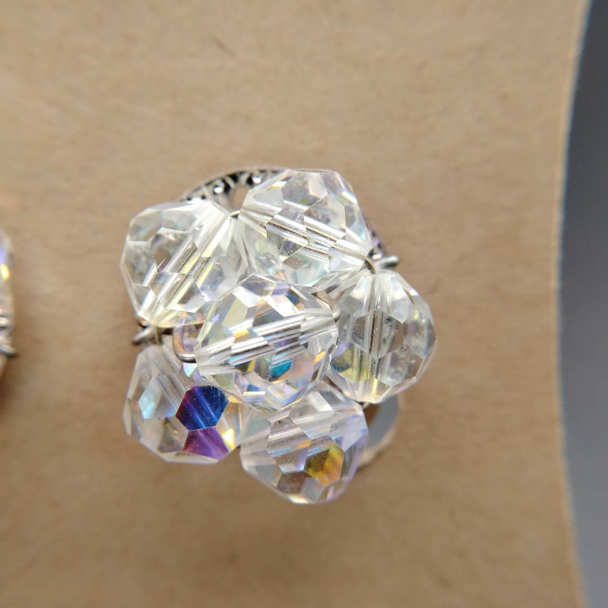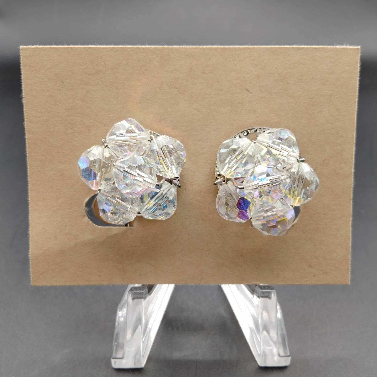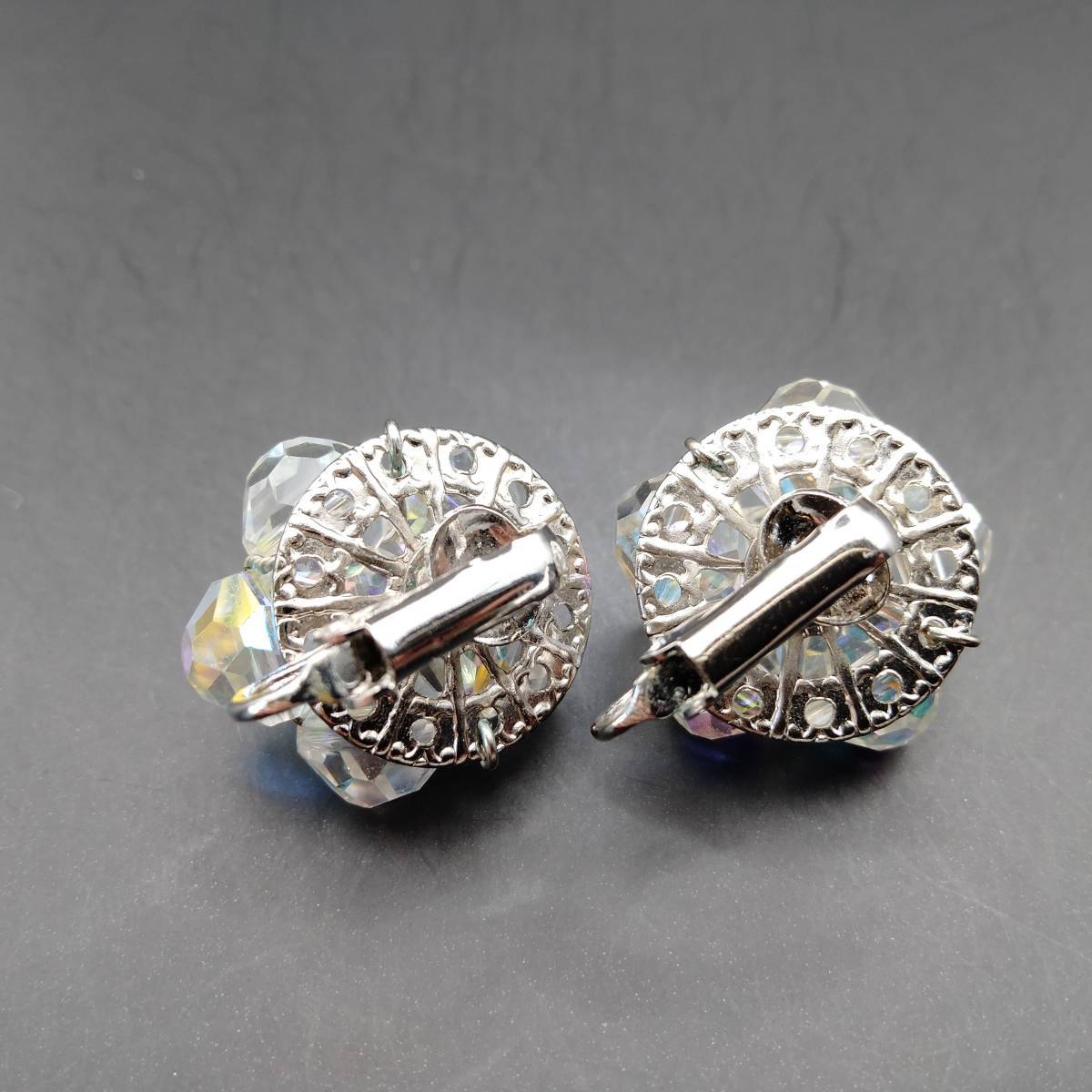 クリアボール ビーズ フラワー 花 シルバートーン ビンテージ クリップ イヤリング アールデコ 昭和レトロ コスチューム ジュエリー 輸入 YMW20