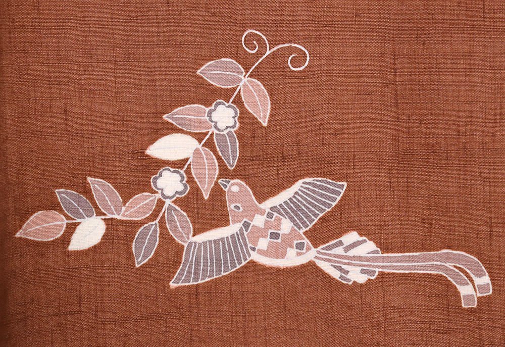 | 色・柄 | 手織り紬 友禅訪問着 袷 赤茶暈し地 花喰鳥 (写真では上手く色が出ない場合があります。ご了承下さい) |