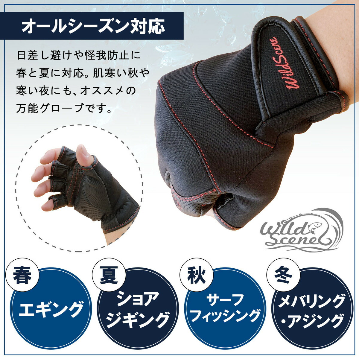 オールシーズン対応 新品 Wild Scene フィッシンググローブ ハイグリップ 防水 グローブ釣り 手袋 両手 指先カット 指なし 滑り止め 釣り用
