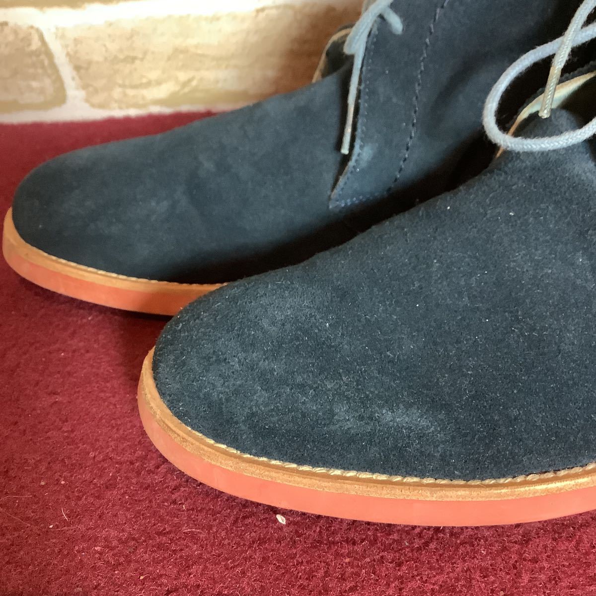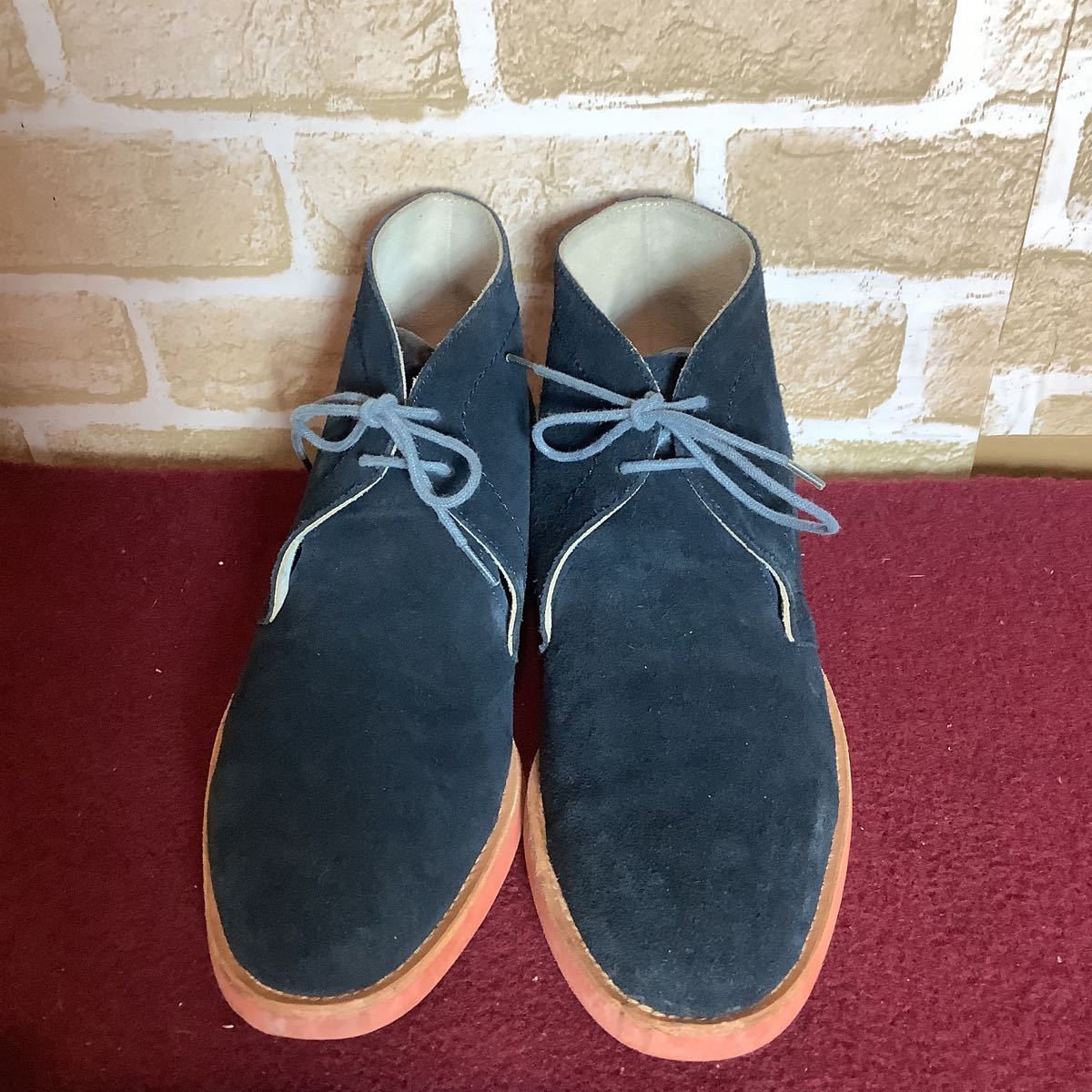 【売り切り!送料無料!】A-309 チャッカブーツ!天然皮革!7 1/2 25.5cm位!ネイビー!おしゃれ!カジュアル!中古!