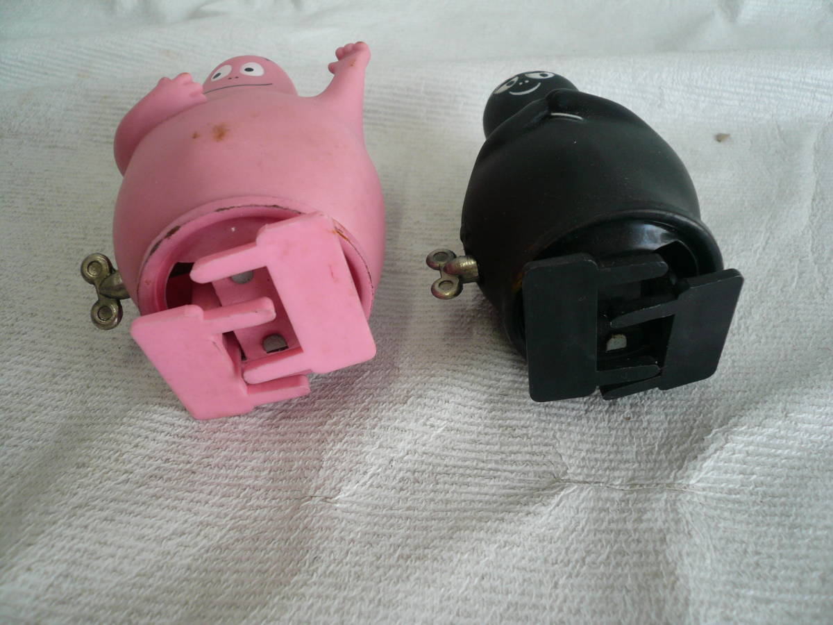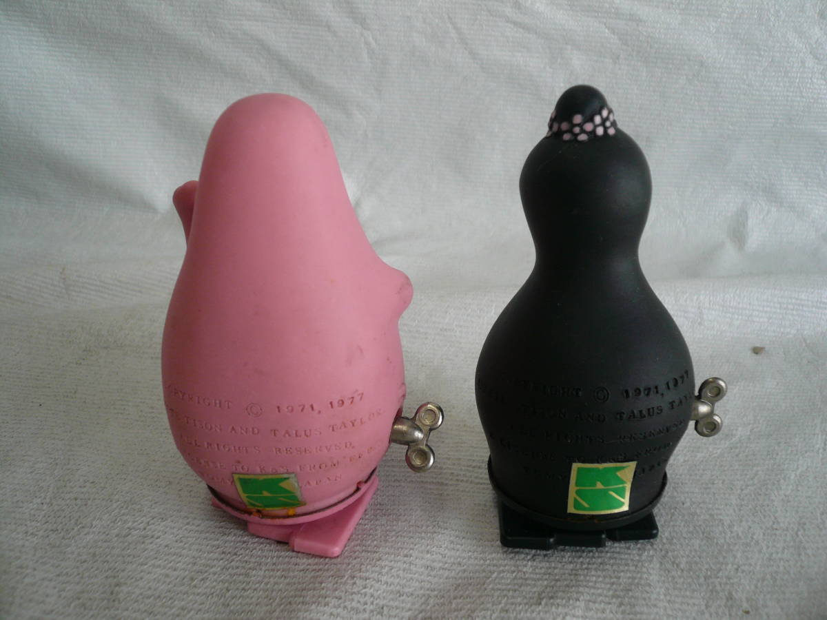 何れもゼンマイを巻くと動作しますが、パパの方は、足が動くたびに片方でひっかかりがあります。