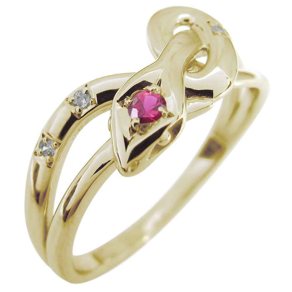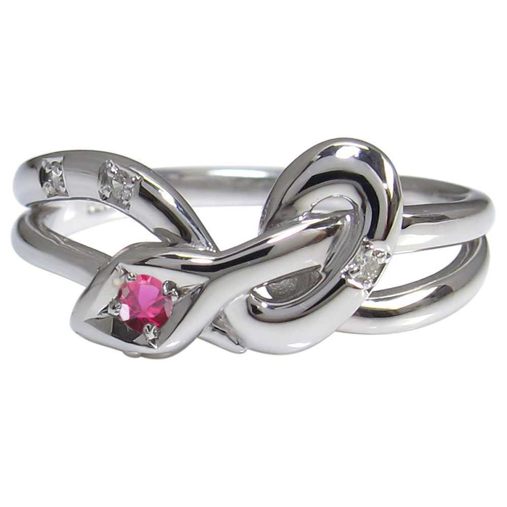 7月誕生石ルビーを使用した10金製の、スネーク(蛇)モチーフリング(指輪)です。