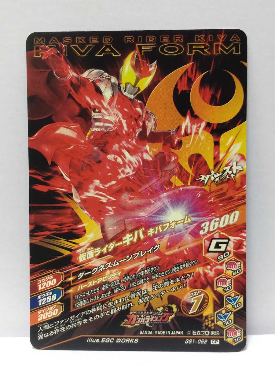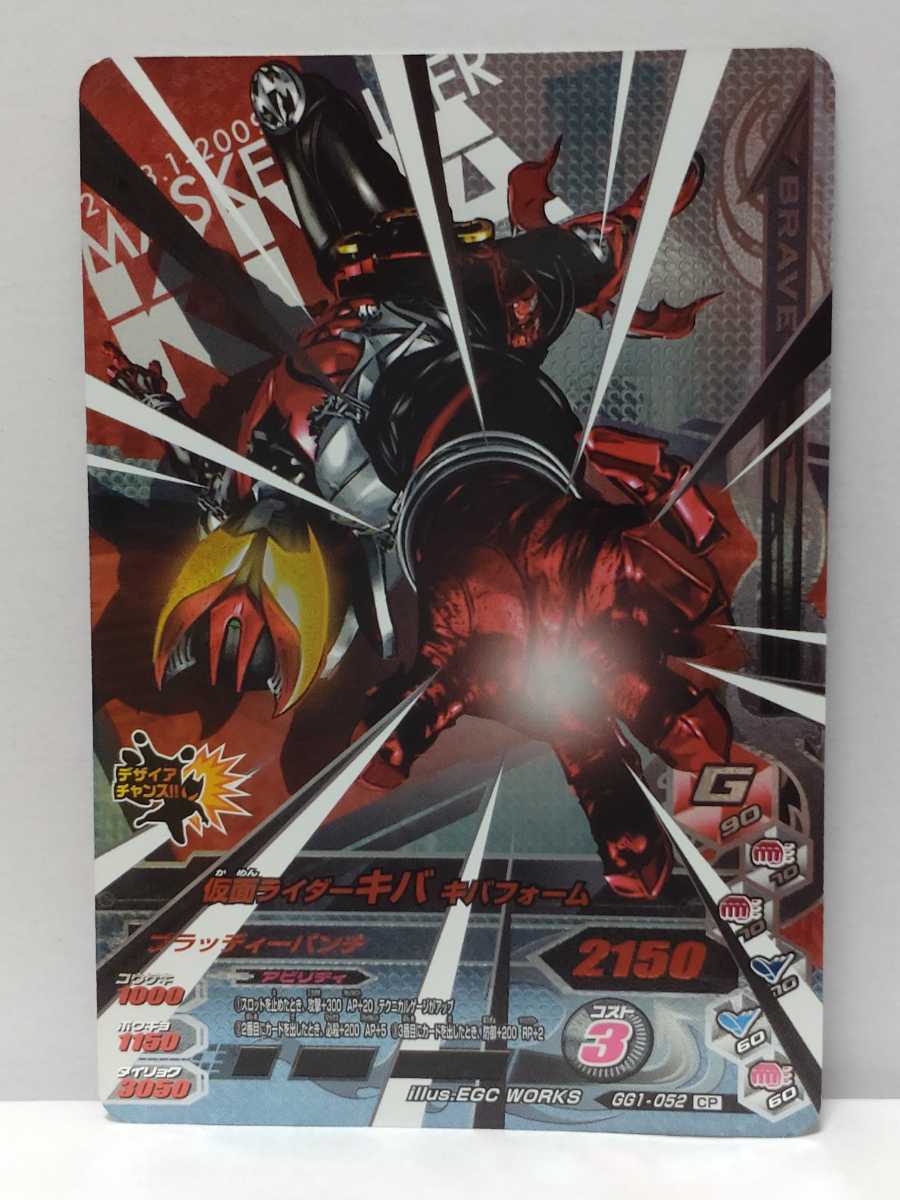 「ガンバライジングGG1弾 仮面ライダーキバ キバフォーム(CP GG1-052)」を出品します。「おまとめ」可能な方は4枚までミニレター送料85円でお取扱いできます。5枚以上の場合は定形郵便で送料別途計算となります。