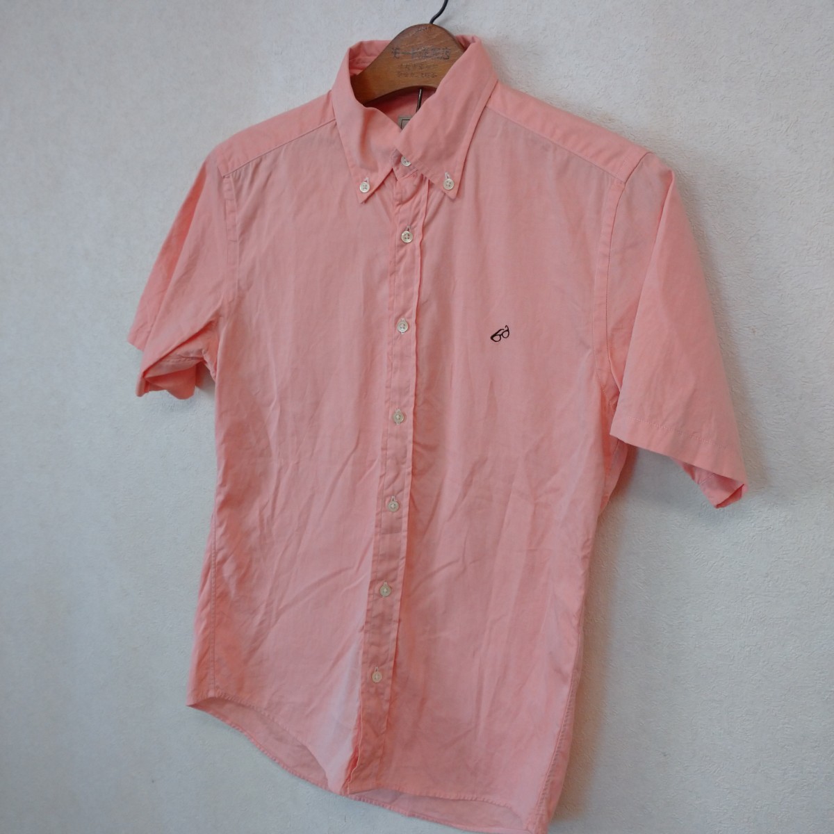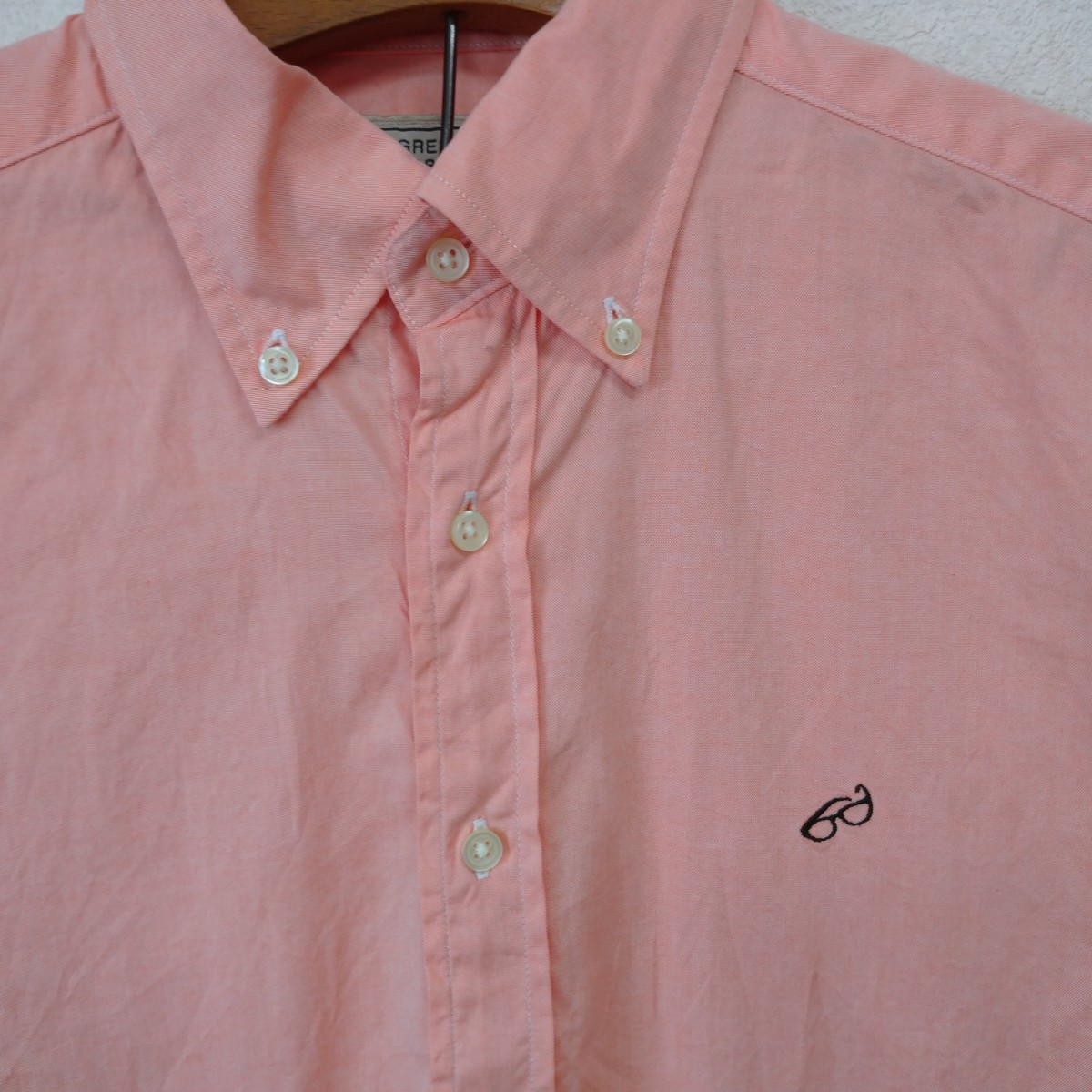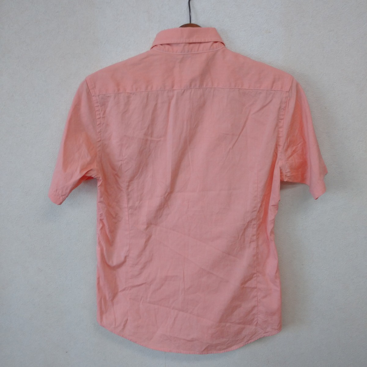 多少の誤差はお許しください。良い雰囲気です。綿100、さらっとしたオックスフォード、シャーベットオレンジ。できる限りダメージは説明させていただきますが、こちらが気づかない程度のわずかなしみ、よごれ、
