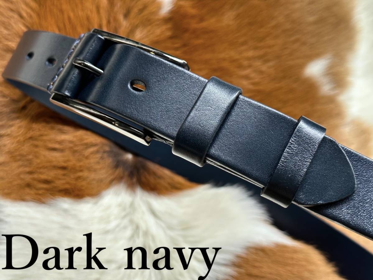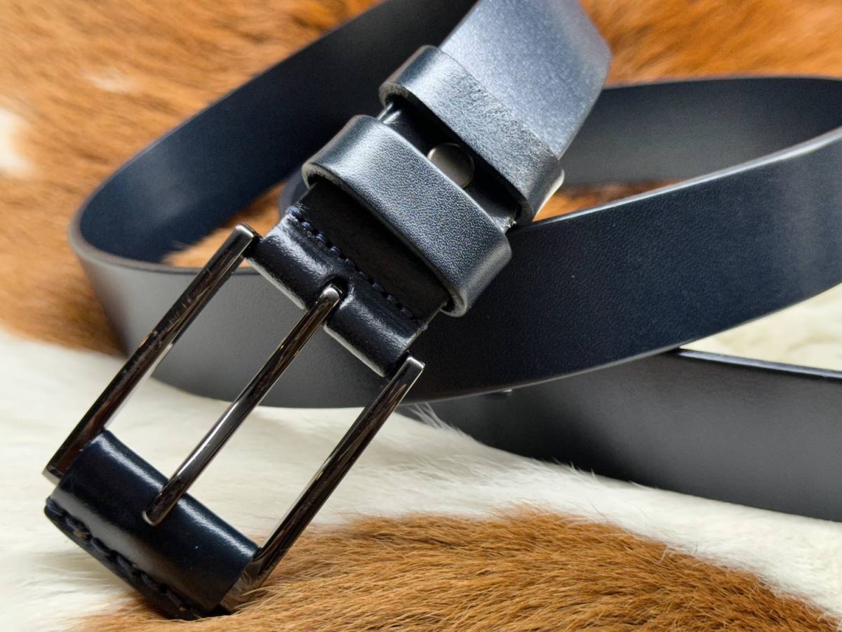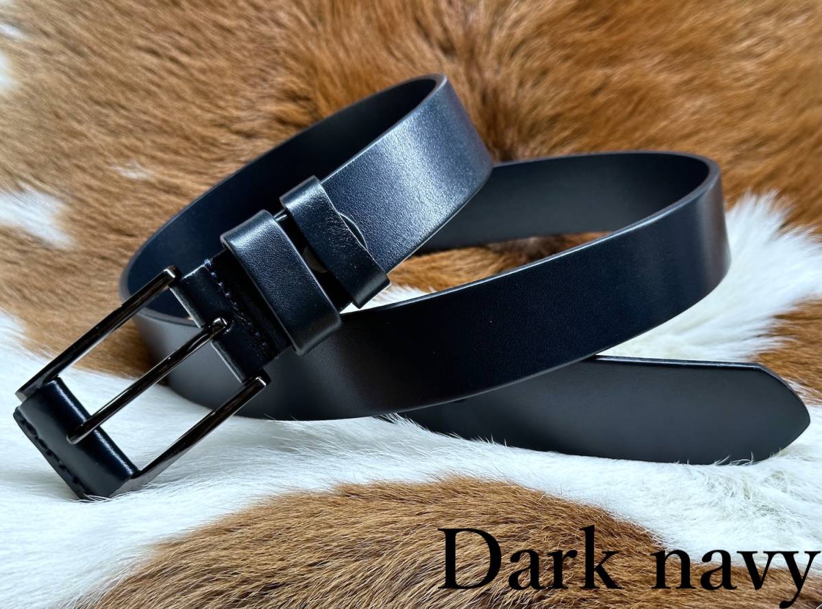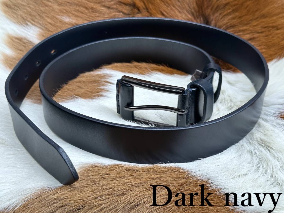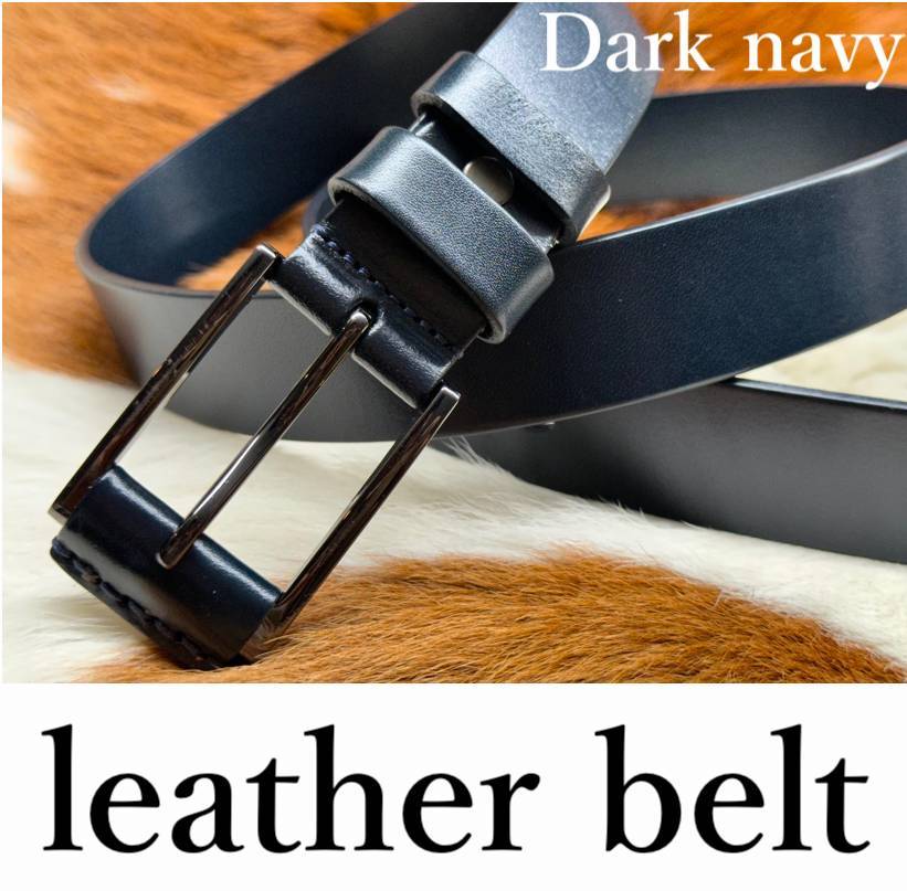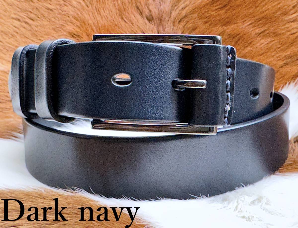 ◆モデル出品◆新品-Dark navy- 肉厚ビジネスレザーベルト ワンランク上の上質本革 濃紺色 leather belt ※選べる8800円ベルトNo.77