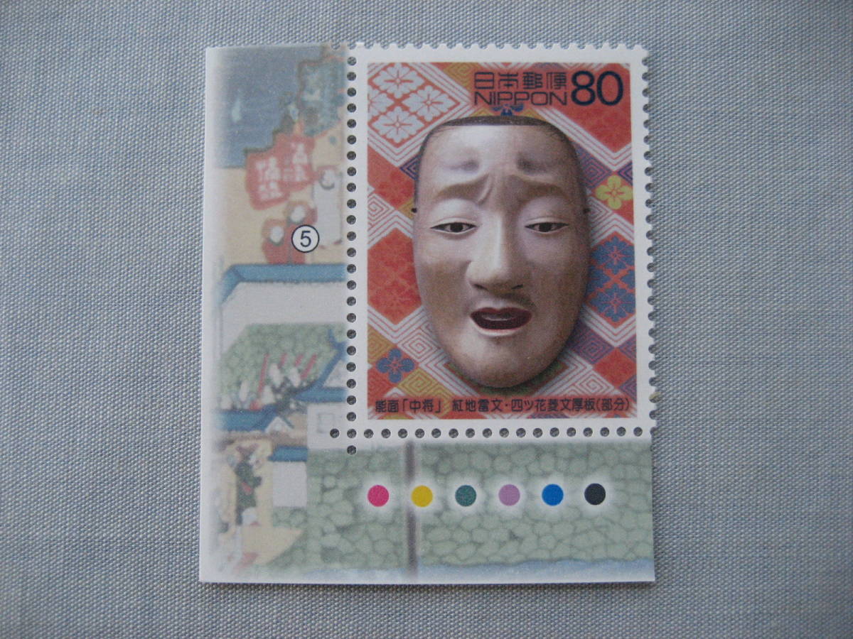 能面(中将)紅地雷文・四ツ花菱文厚板(部分) 80円切手