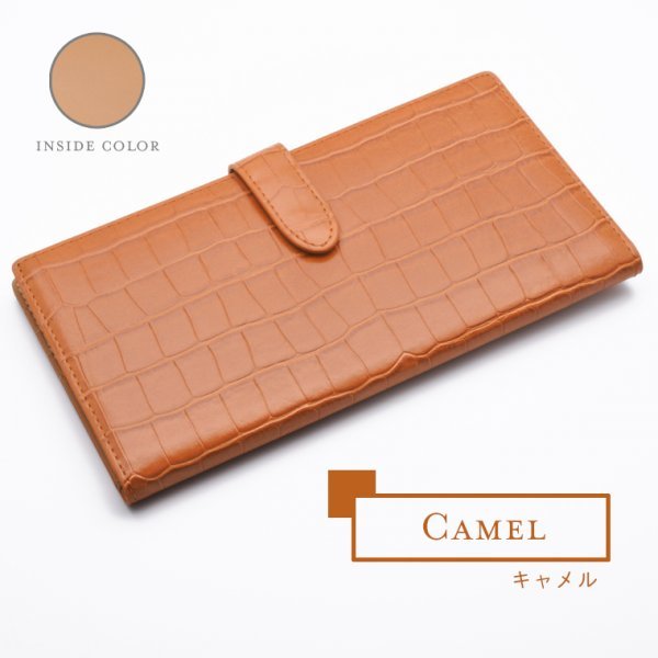 新品即決◆クロコ柄 長財布 【キャメル】 レディース 薄い 財布 軽量 小銭入れ カード入れ 札入れ 薄型 ベルト付き 大容量 使いやすい
