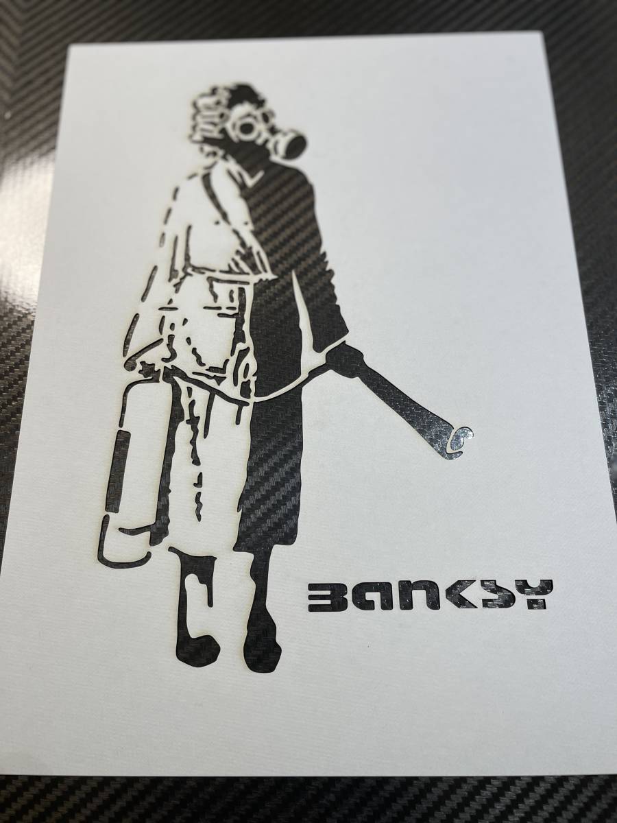 バンクシー【031】【ウクライナ 消火器 ガスマスク バスローブの女性】【A4 厚紙】ステンシルシート オマージュアート BANKSY