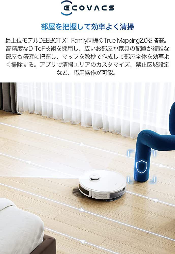 【マッピングで効率的な掃除】高性能マッピングテクノロジー「True Mapping2.0」で、壁までの距離、家具の位置や形状を高速かつ正確に測定できて、複雑な構造を持つお家にも部屋の間取りに合わせて清掃時間が最短になるような走行ルートにて実行します。ご自宅の各階で複数のマップをスキャンして保存します。